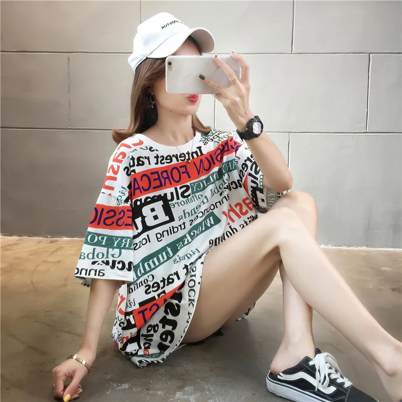 FREE SHIPPING Harajuku Style Women Tshirt Spring Summer Fashion Print Short Sleeve O Neck Cotton Womens Tops Casual Loose T shirt Femme JKP2232