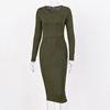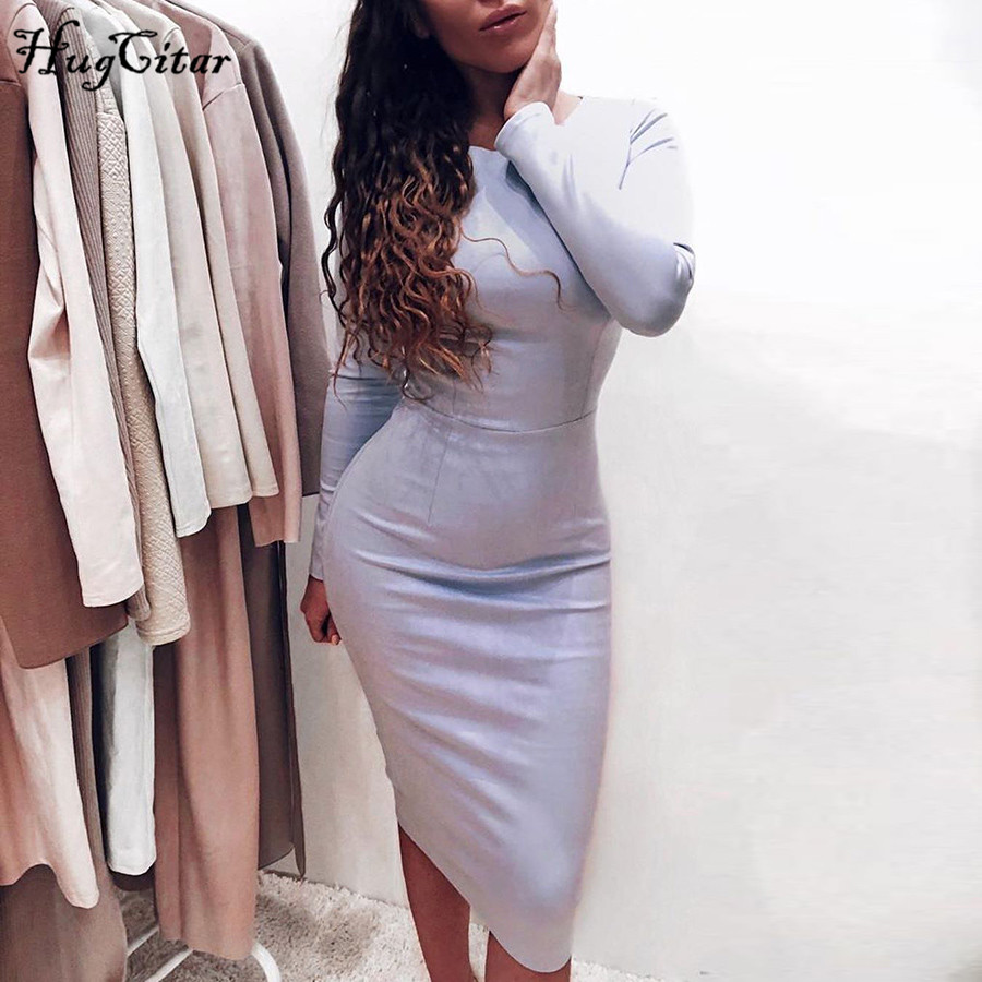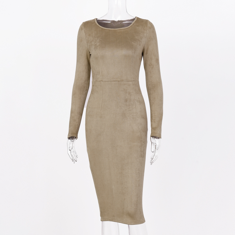 Suede Bodycon Midi Dress Autumn Winter Solid Party Elegant Outfits Streetwear JKP3887