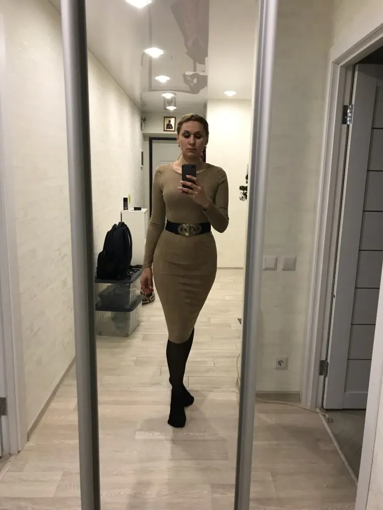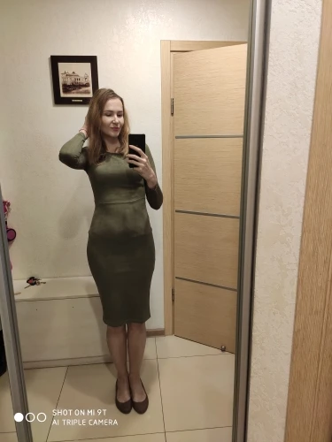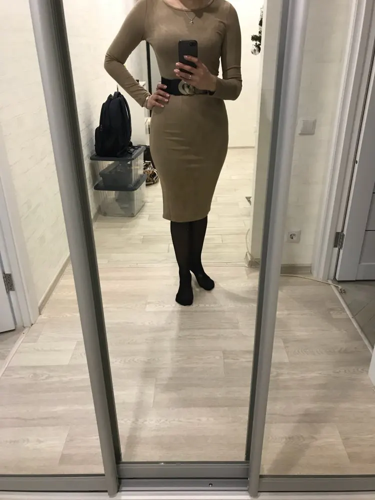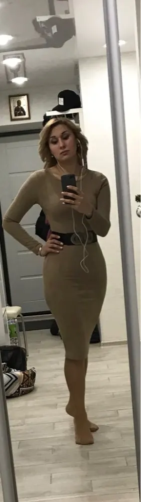 The dress in Khabarovsk came very quickly, for 2 weeks. The material is pleasant, it stretches well, but it's heavy to wear. My height is 172 cm, 85-65-90. size m back to back. The sleeves are a little short, and very narrow. I'm fine, TK hands are very thin. The waist is slightly overstated. But the length is good, not short. In general, girls high uniquely take the size L