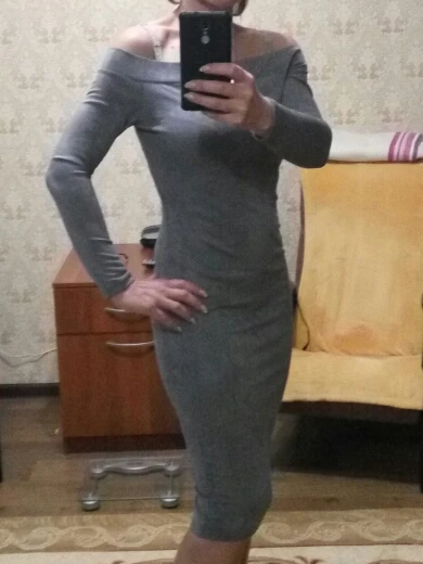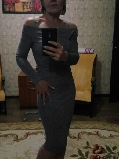 The dress is cool, really! Stitched neatly, beautiful gray color, very pleasant to the body. And fit perfectly.