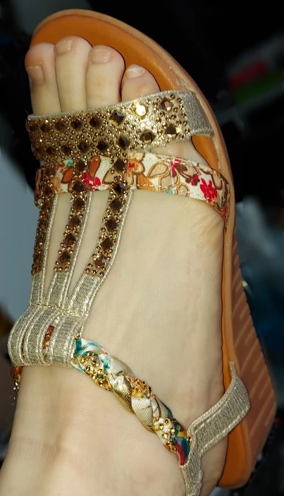Summer Bohemia Sandals Crystal Wedges Rome Gladiator Heels JKP4697