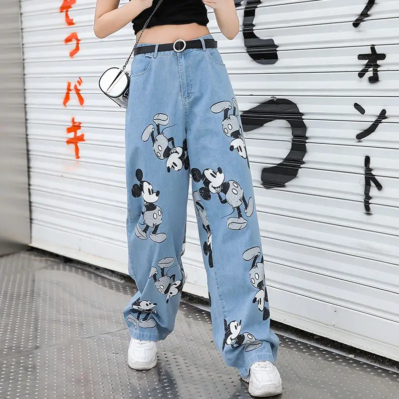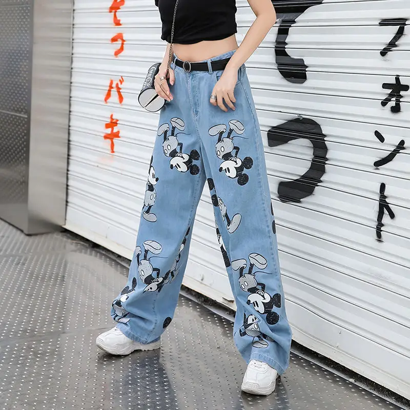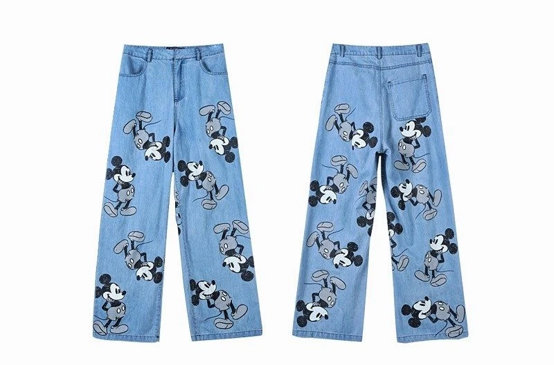 Summer Fashion Streetwear Baggy Pants Mouse Print Denim Trousers Oversize JKP5994