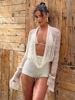 Summer Outfit 2025 Women Lace Sheer Embroidered Long Sleeve Top And Matching Shorts JKP7352