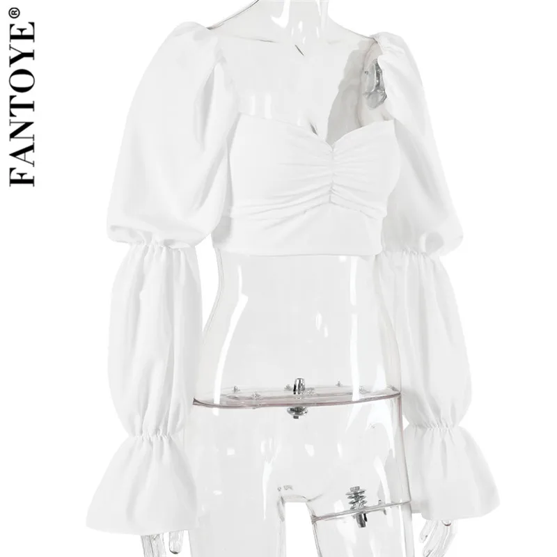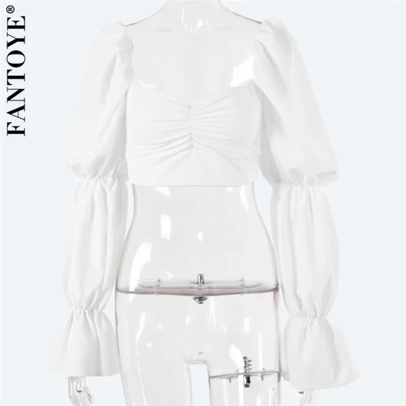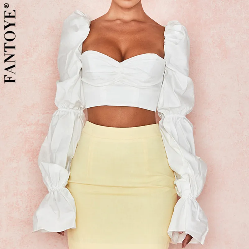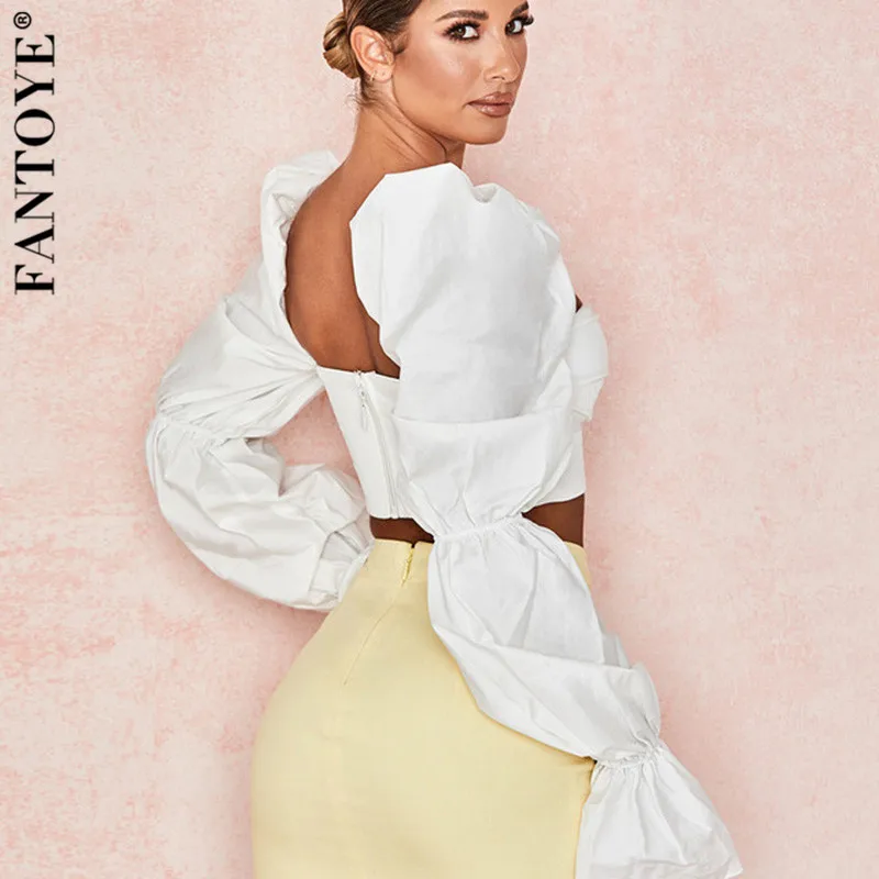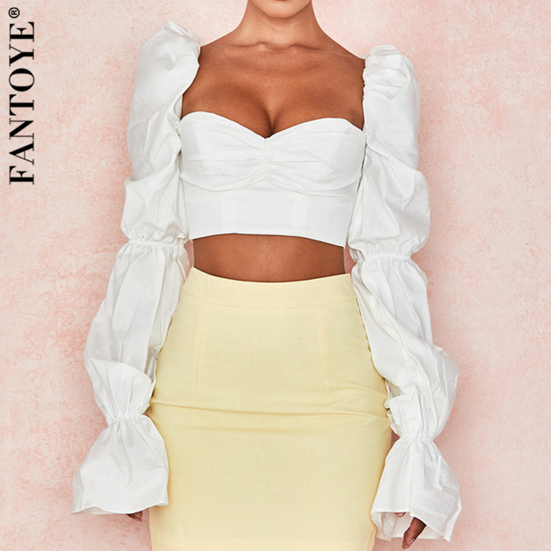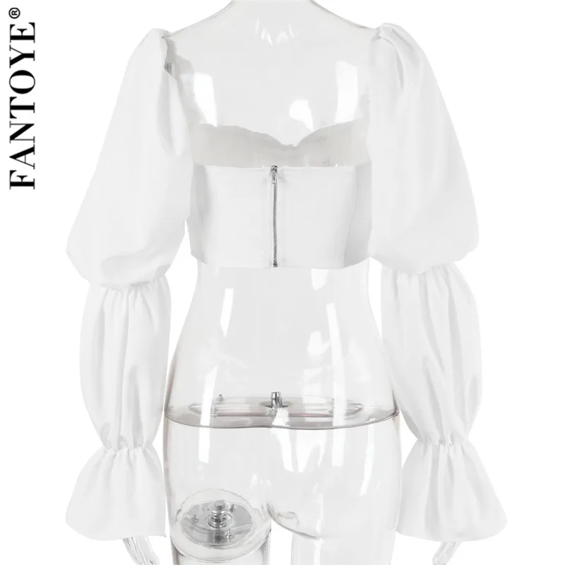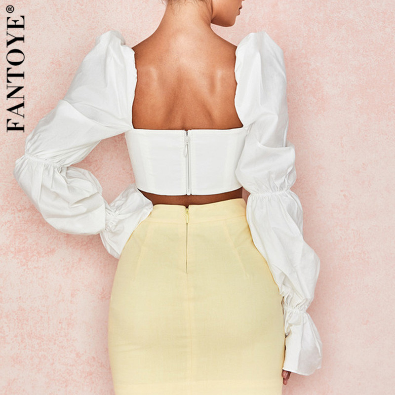 Summer Sexy Crop Tops Backless White Long Flare Sleeve Zipper Elegant Streetwear Tank Top 2020