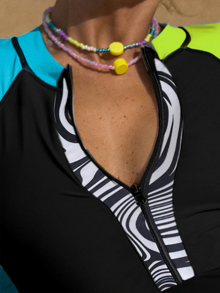 Surfing Outfit For Women Long Sleeves High Neck With Zipper One Pieces Swimsuit JKP6029