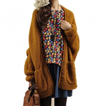FREE SHIPPING Big Pocket Knitted Oversized sweater female Solid Cardigans JKP1096