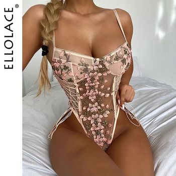FREE SHIPPING Floral Embroidery Bodysuit Transparent Lingerie JKP6158