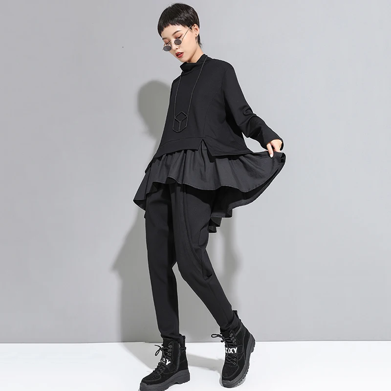 Sweatshirt Asymmetrical Ruffles Big Size Fashion Tide Spring Autumn 2020 JKP3880