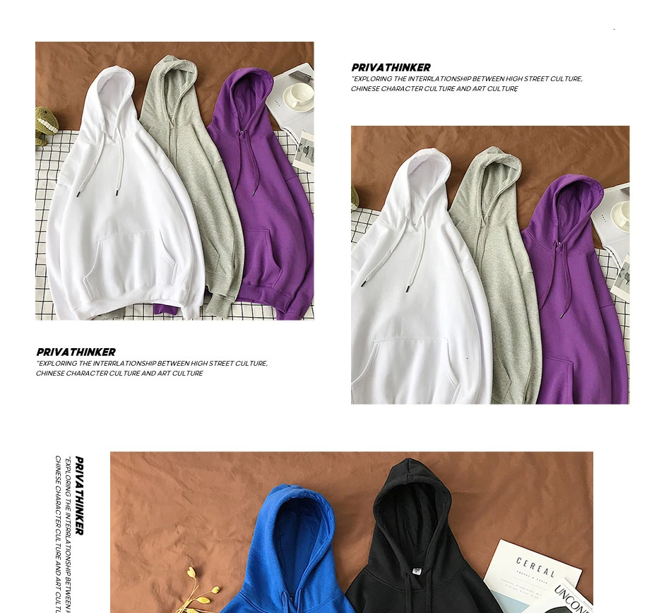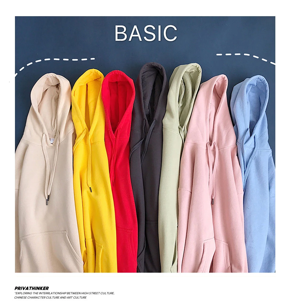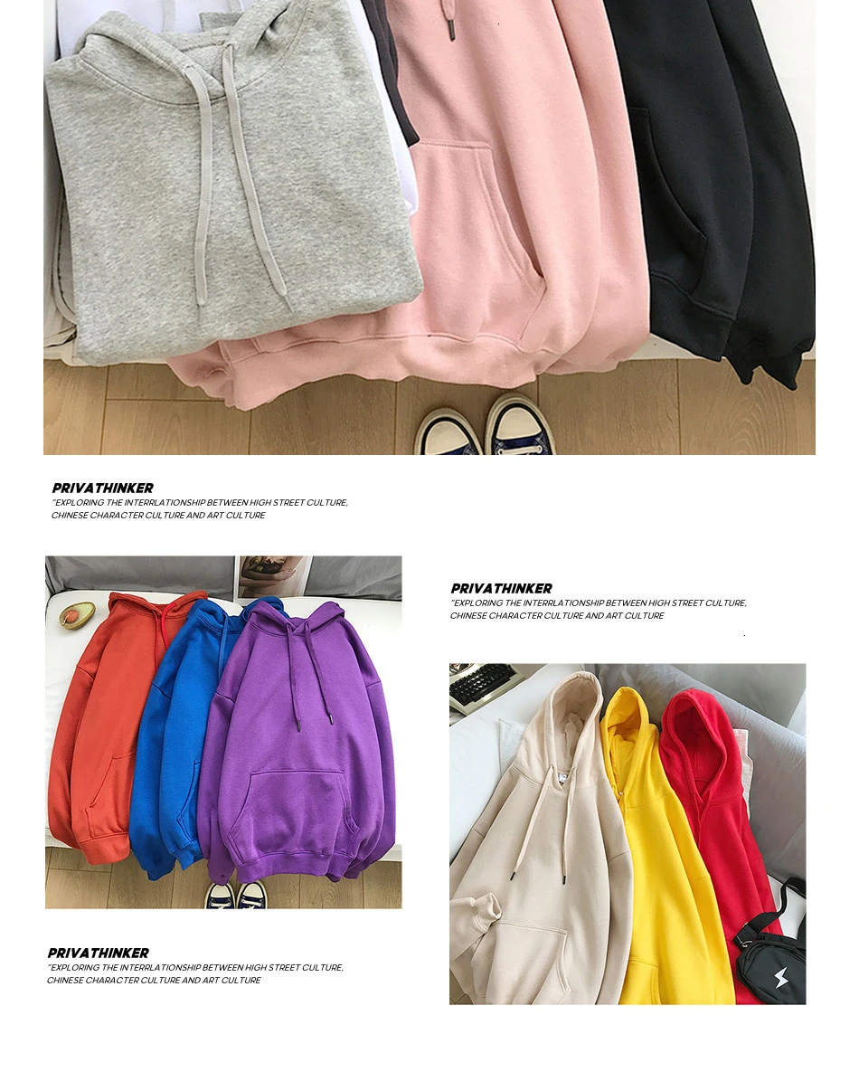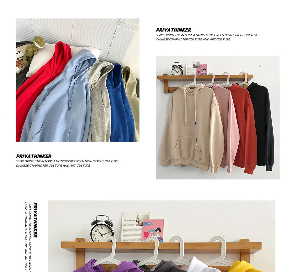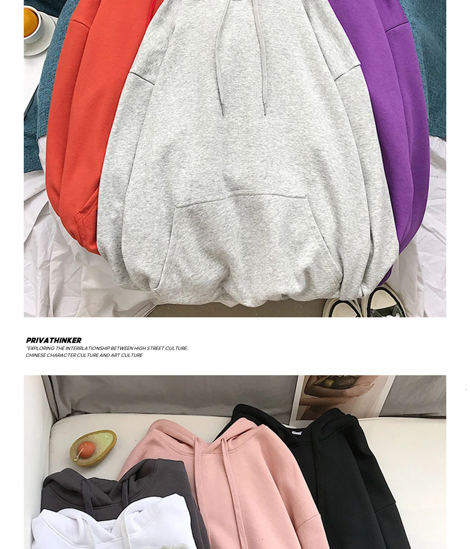 Sweatshirts Solid 12 Colors Korean Female Hooded Pullovers Cotton Thicken Warm Oversized Hoodies Women