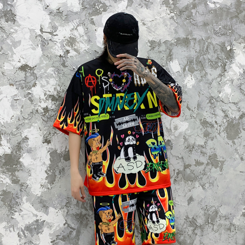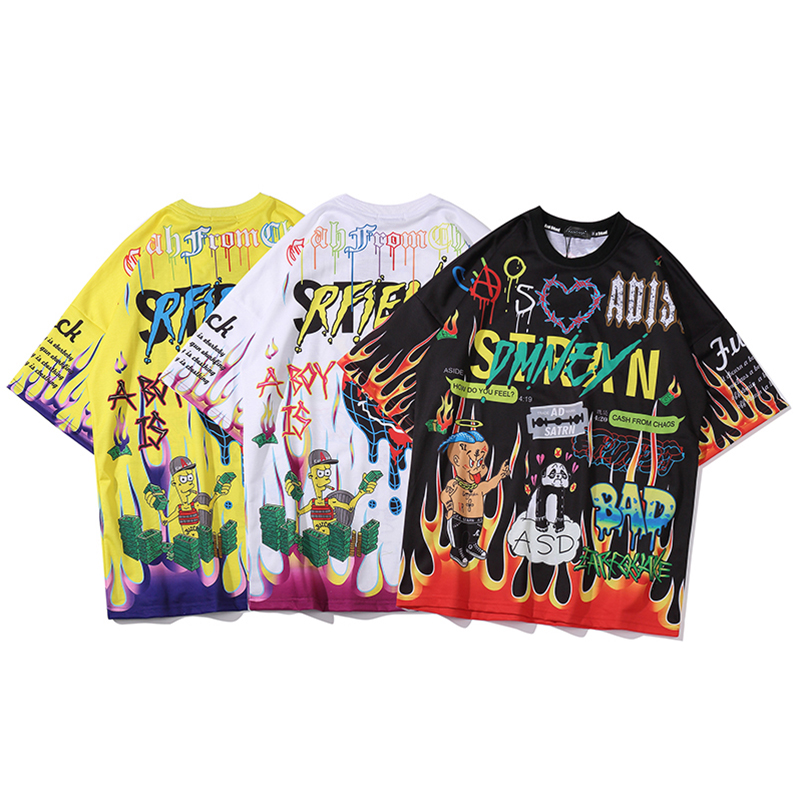 T Shirt Cartoon Graffiti Print Cozy Harajuku Hip Hop Style Street Casual Summer Streetwear