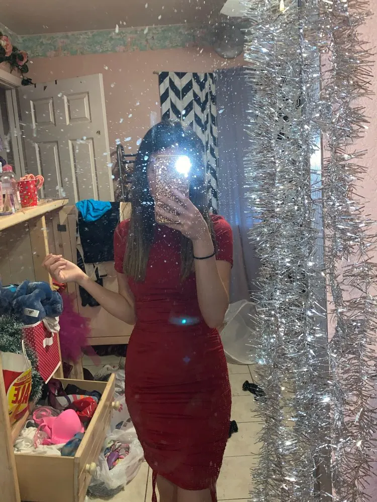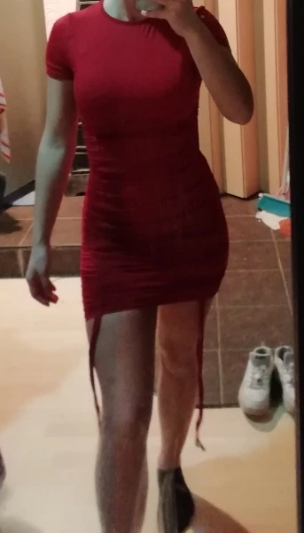 Excuse the messy room, this dress is so pretty though! It’s not see through, very tight but in the right places. I love it! :) I am 5’0 feet tall and 90lbs