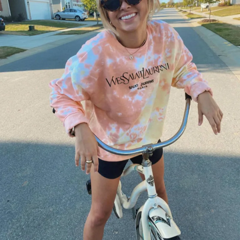 Tie Dye Sweatshirts Autumn Casual Letter Print Oversized Colourful