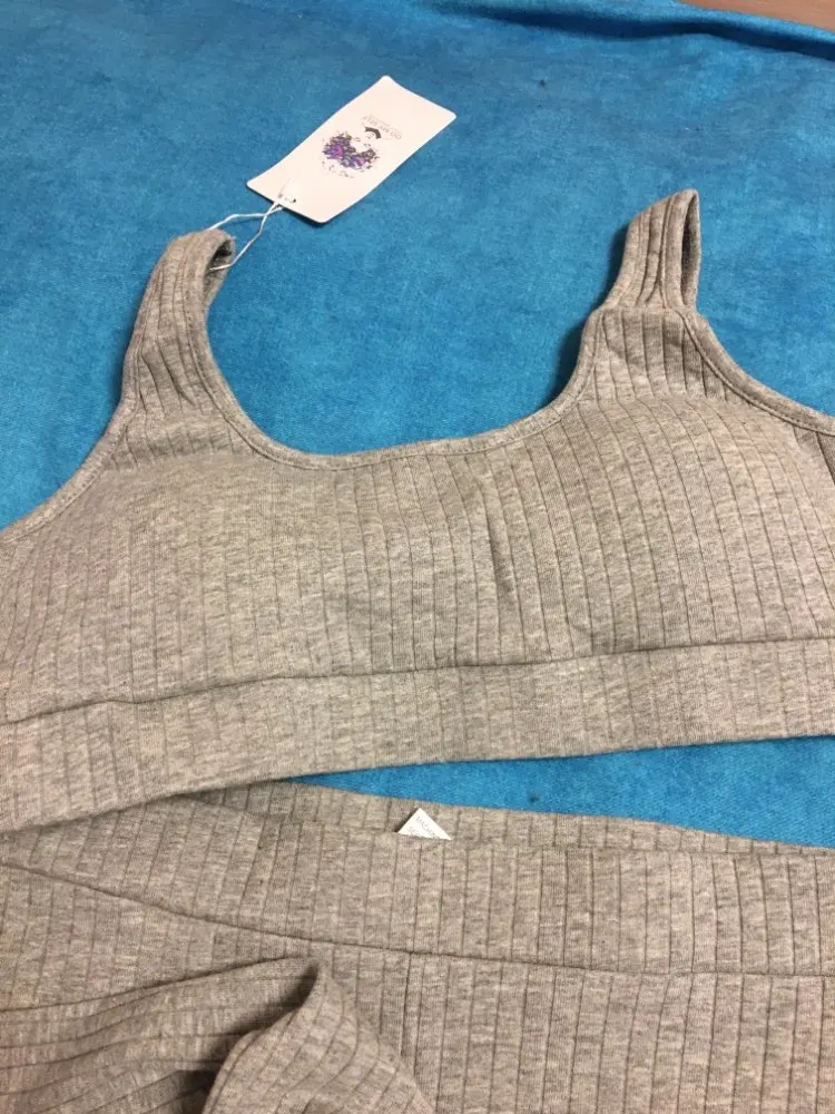 Home / Two Piece / Two Piece Lounge Set Slim Crop Top Knitted Padded Sporting Leggings Active Wear Outfits JKP3915
