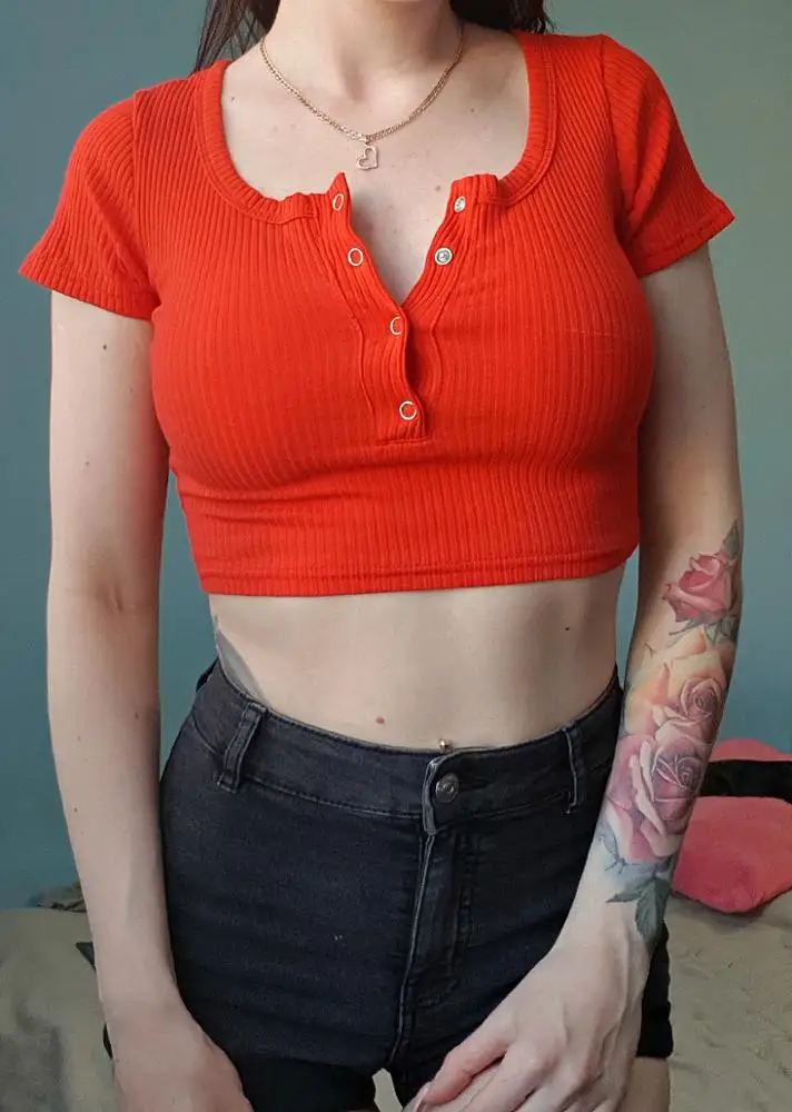 Great top. The truth is a little small in the chest, but if all the buttons unzip-excellent) I think, will stretch a little. The fabric is pleasant, there is no smell. I was ordering for about a month. At its size m took L (about the chest 92)