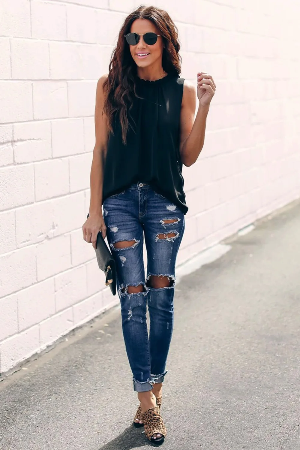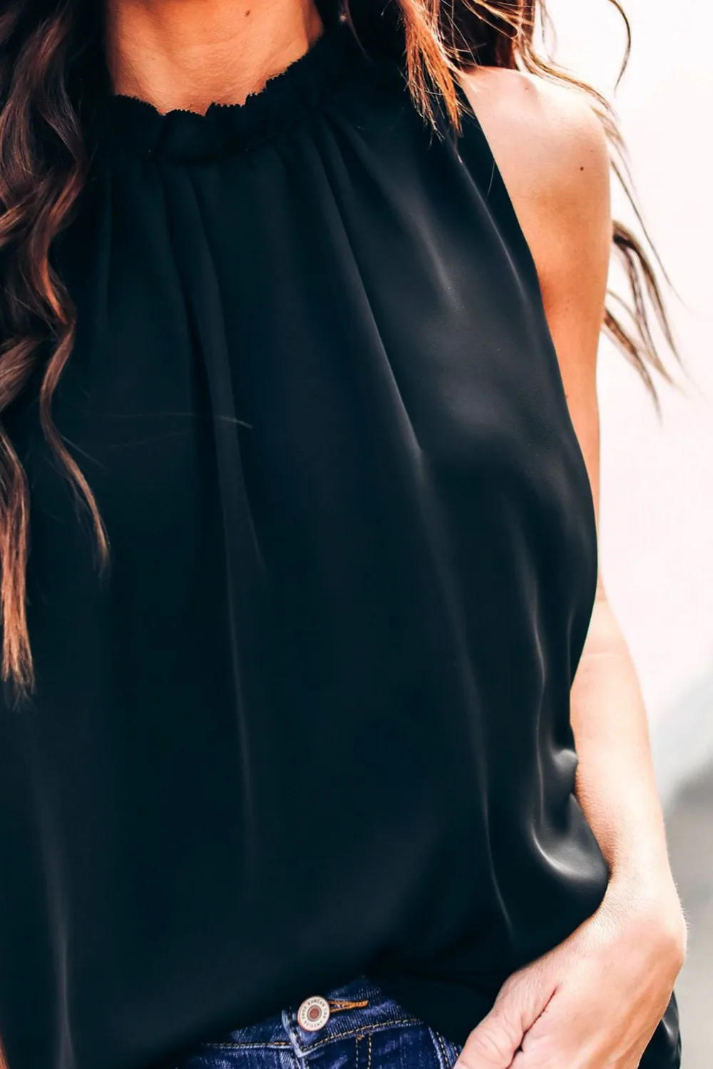 Ultimate Spring Outfits Red Black White Pink Ruffle Trim Neckline Tank Top Women Summer Sleeveless JKP1550