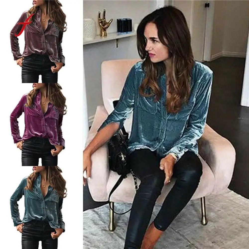 Velvet Female Pocket Stylish Fashion Slim Ladies Shirts JKP1070