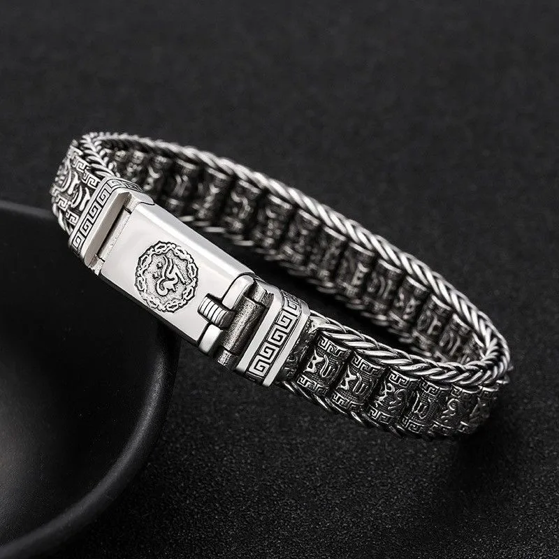 Viking Chain Bracelet Dragon Clasp Woven Six Character Mantra Chain Jewelry JKP7321