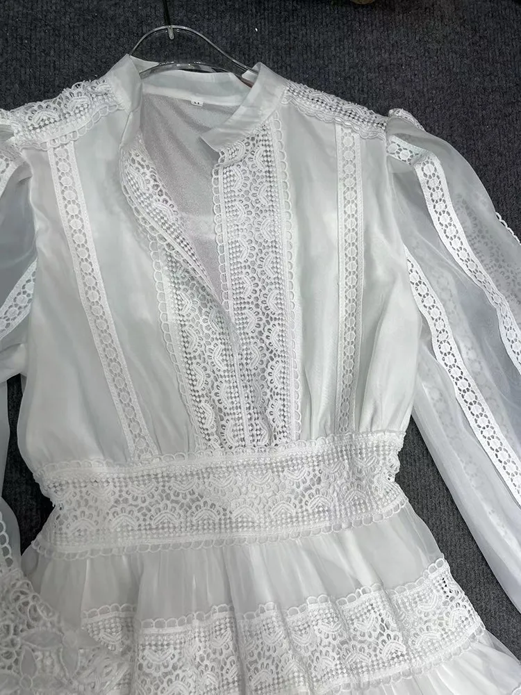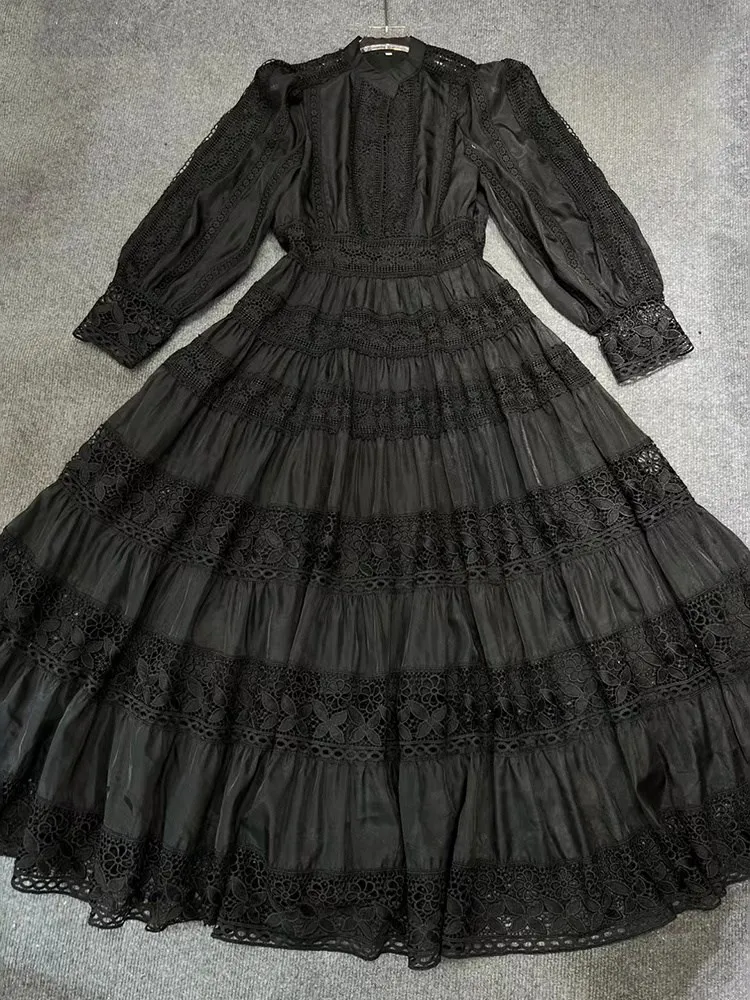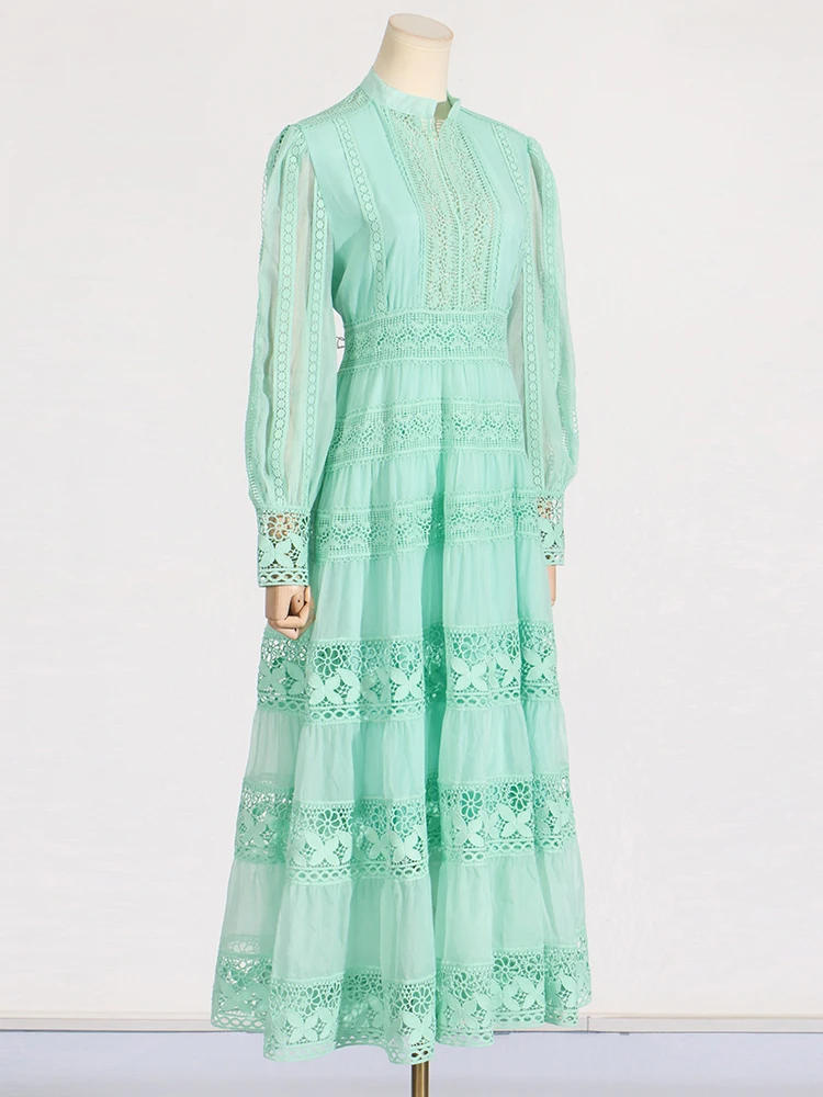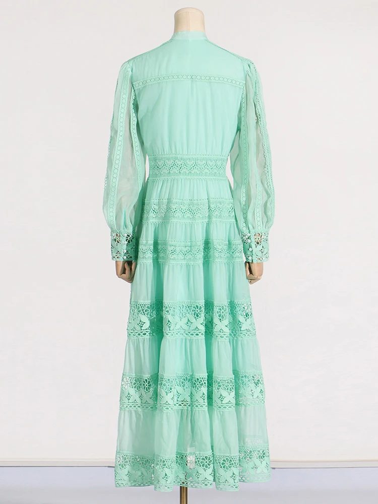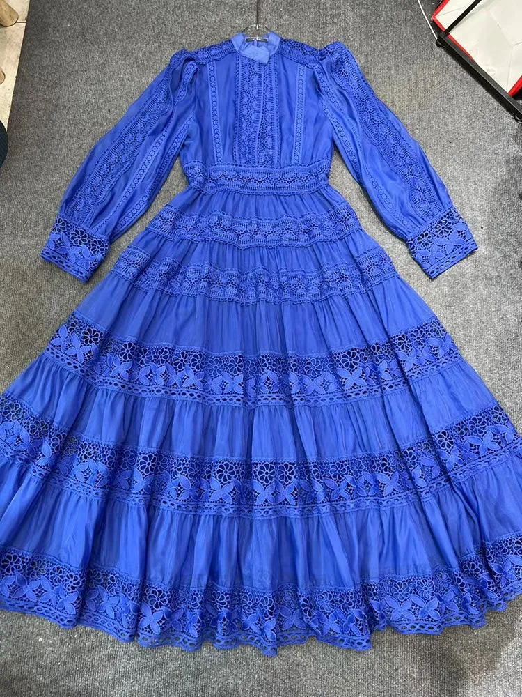 Vintage Boho Lace Maxi Dress Elegant Long Sleeve Gown Hollow Out Embroidery Dress JKP7306