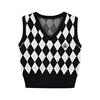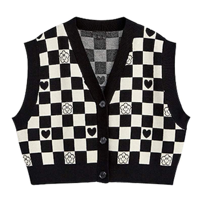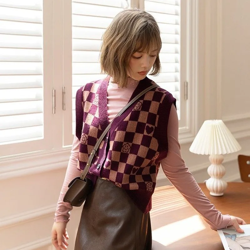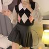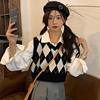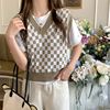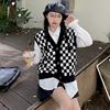 Vintage Checkerboard Plaid Sweater Knitted JKP5979