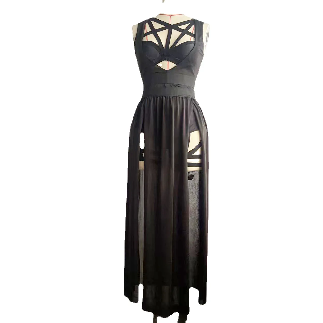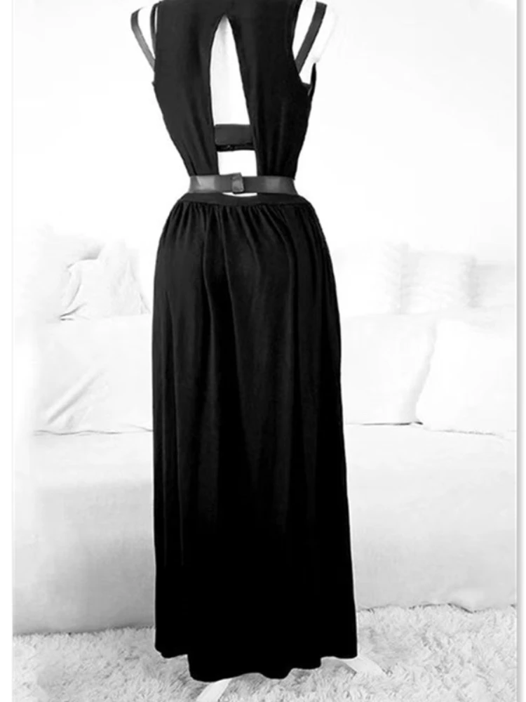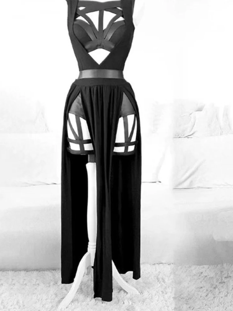 Vintage Gothic Club Sets for Women Sleeveless Black Corset Crop Top Bandage Underpants Mesh Split Skirt 3 Piece JKP6039