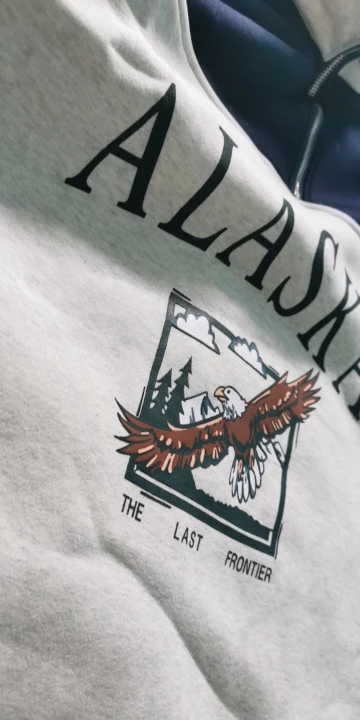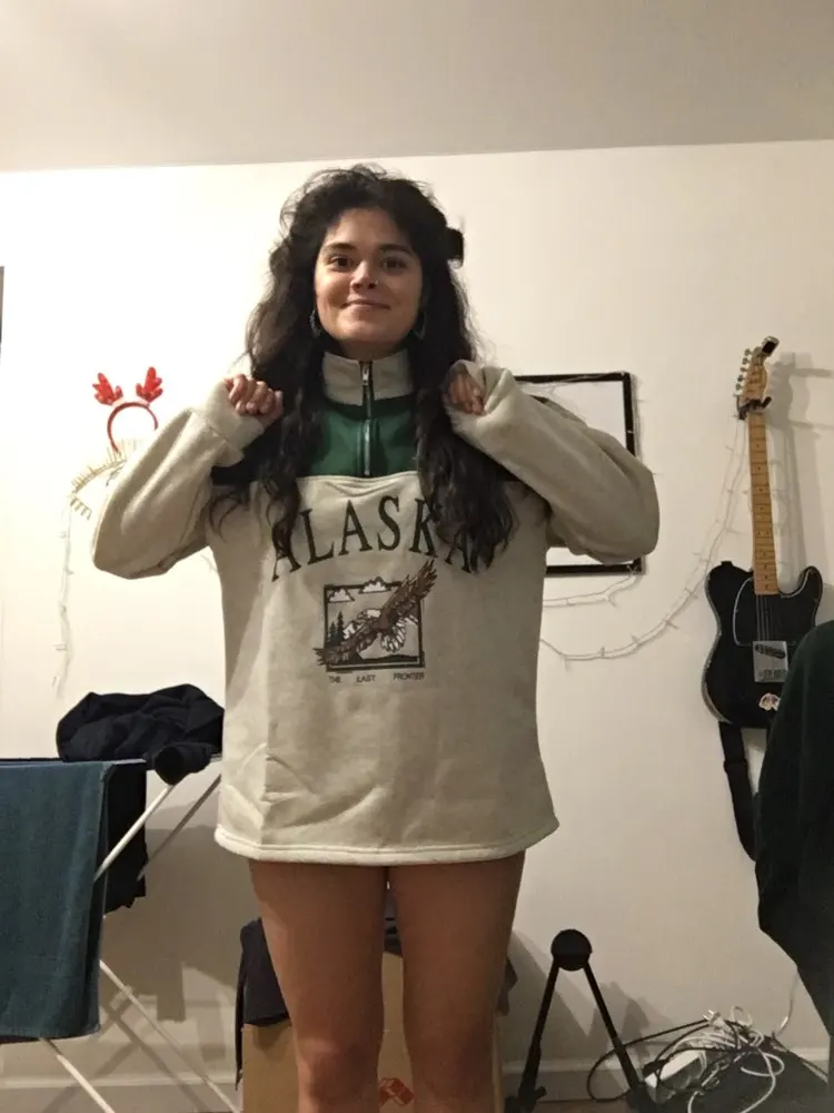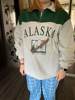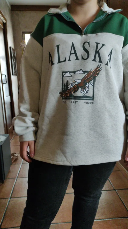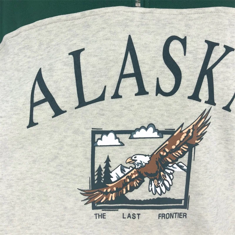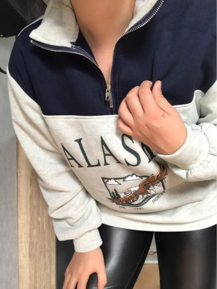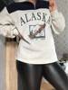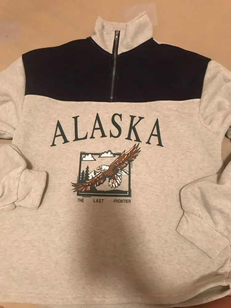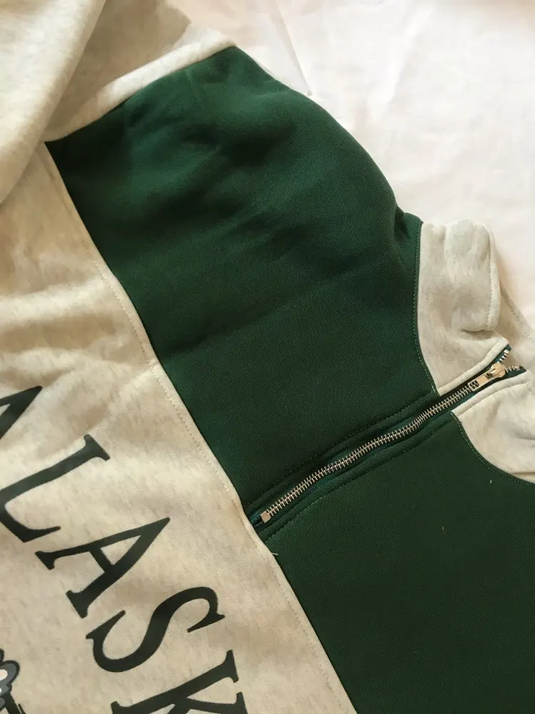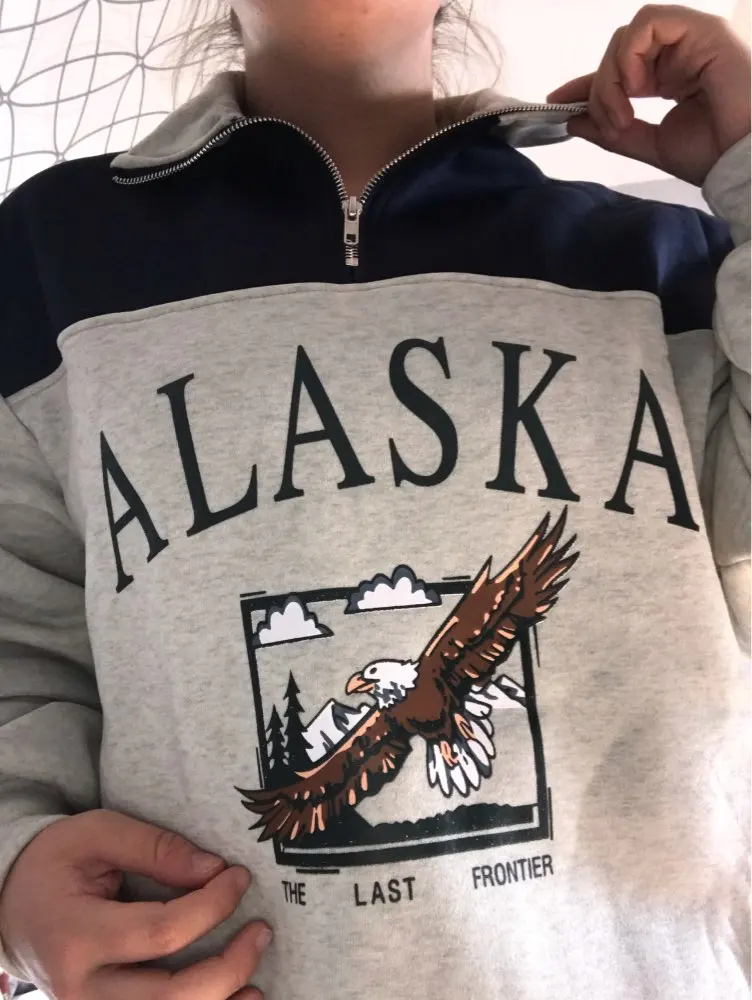 Vintage Grey Alaska Letter Printing Sweatshirts Stand Collar Half Zipper