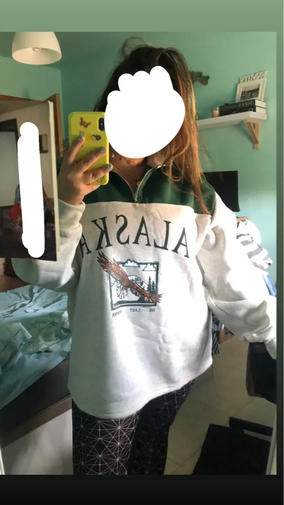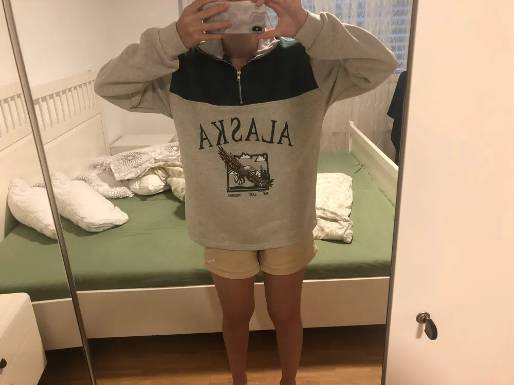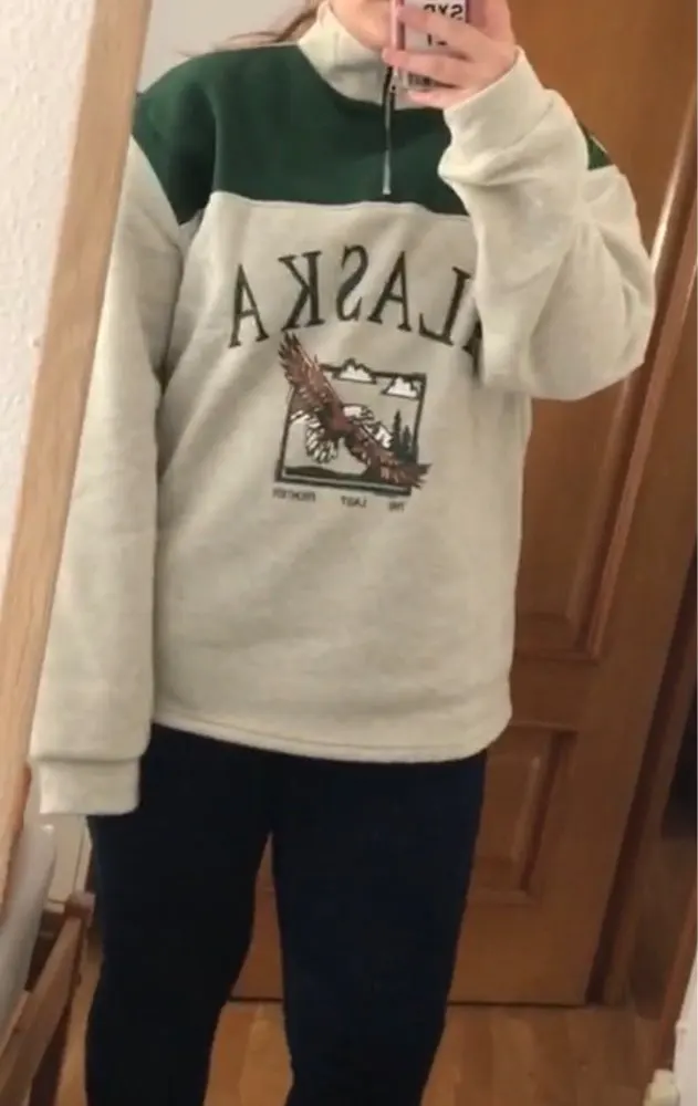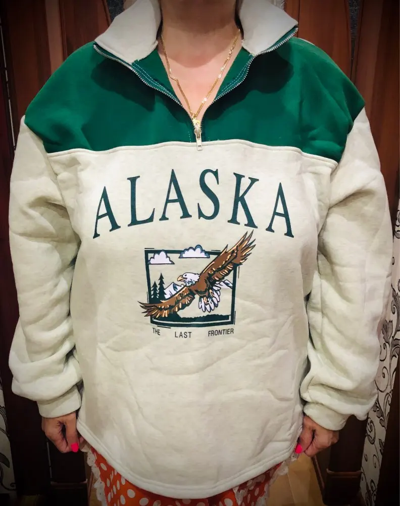 Cool sweatshirt, took mom, because she reminded her of retro clothes from the 90 s. Soft, warm. Material 95% polyester, 5% spandex. Size on the size grid perfectly fit, width 134 cm, length 73 cm, as you can see the difference in a couple of CM, not critical. Delivered quickly, I advise everyone!