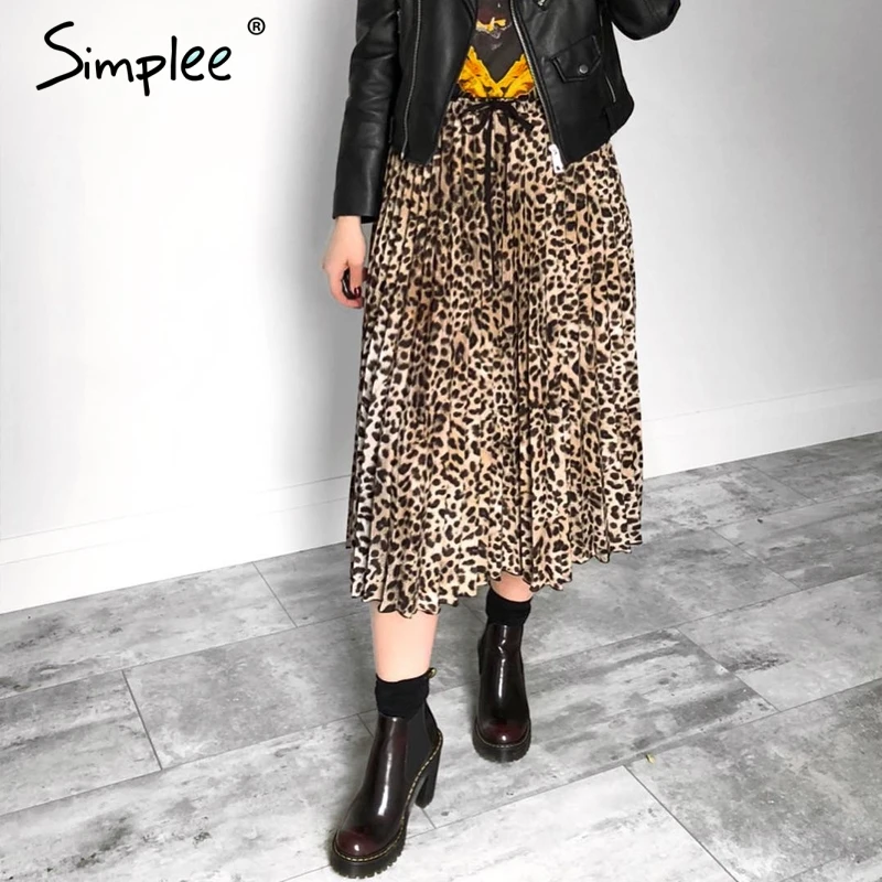 Vintage Leopard Print Pleated Skirts Korean Midi Skirt Streetwear JKP3829
