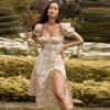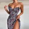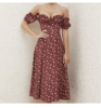 Vintage Midi Dress Solid Front Button Bodycon Strapless High Split Dresses JKP5923