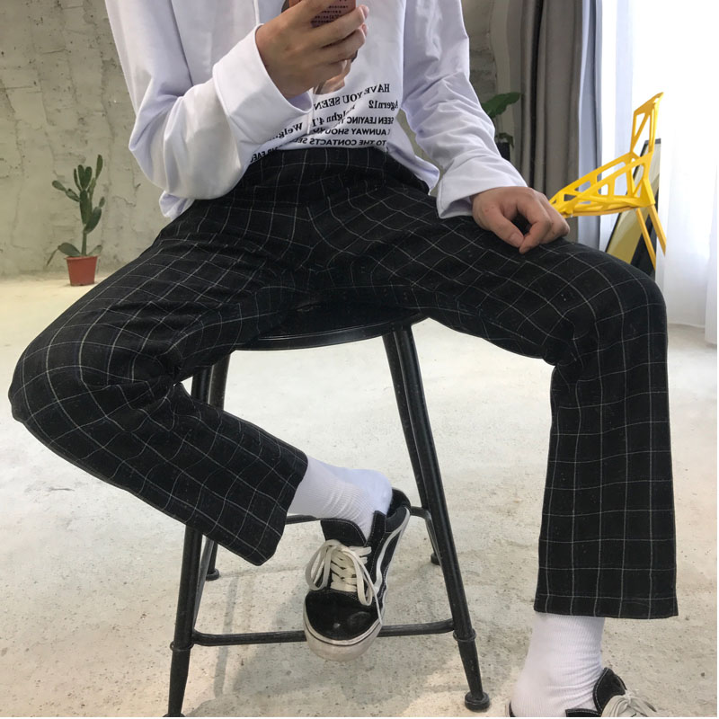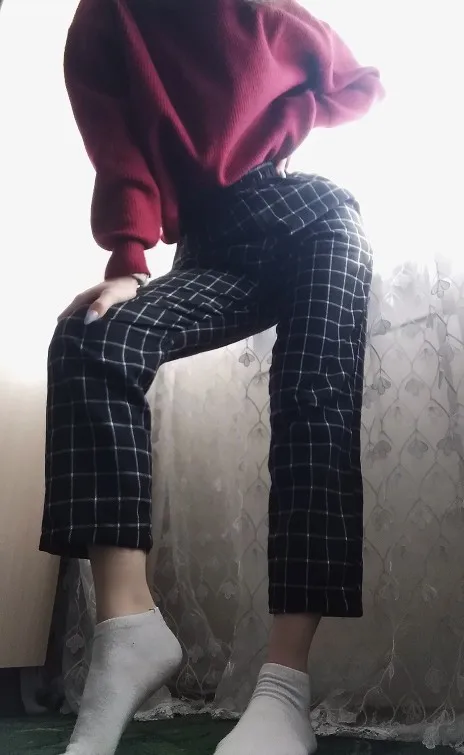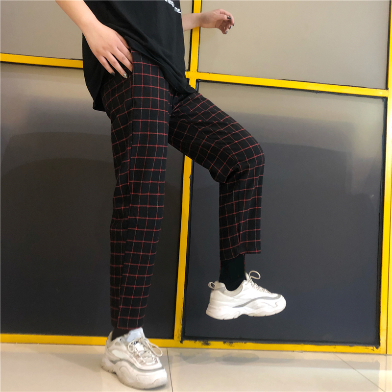 Vintage Plaid High Waist Slim Pocket Summer Ankle Length Pants Checkerboard Harajuku Korean Style Fashion JKP3812