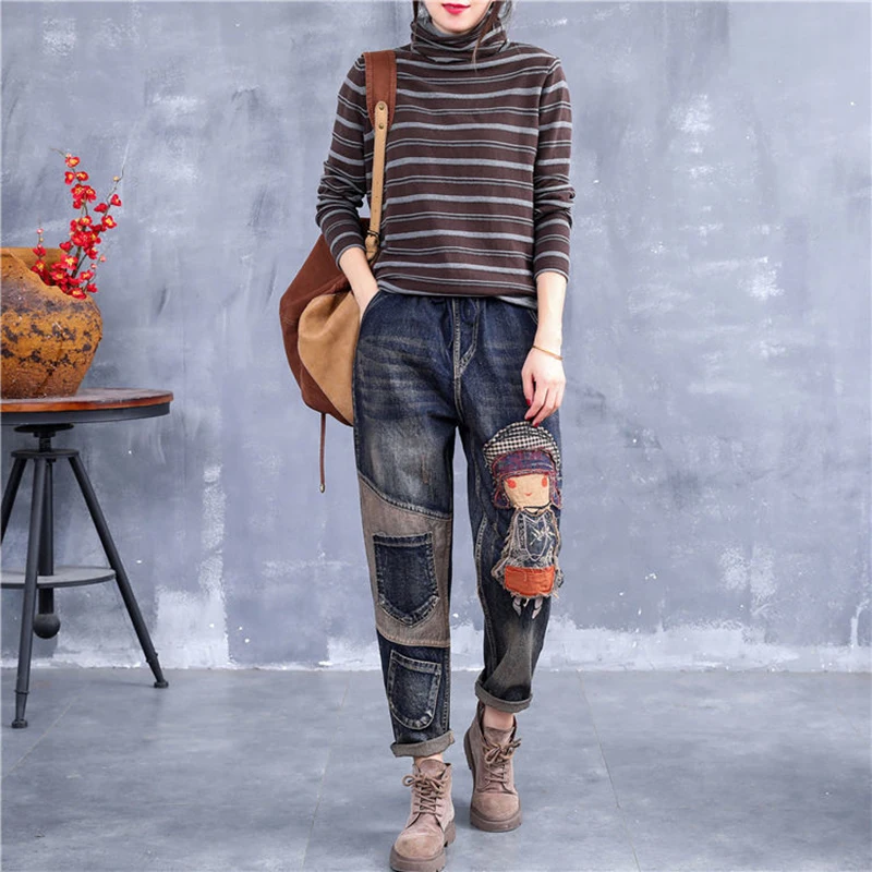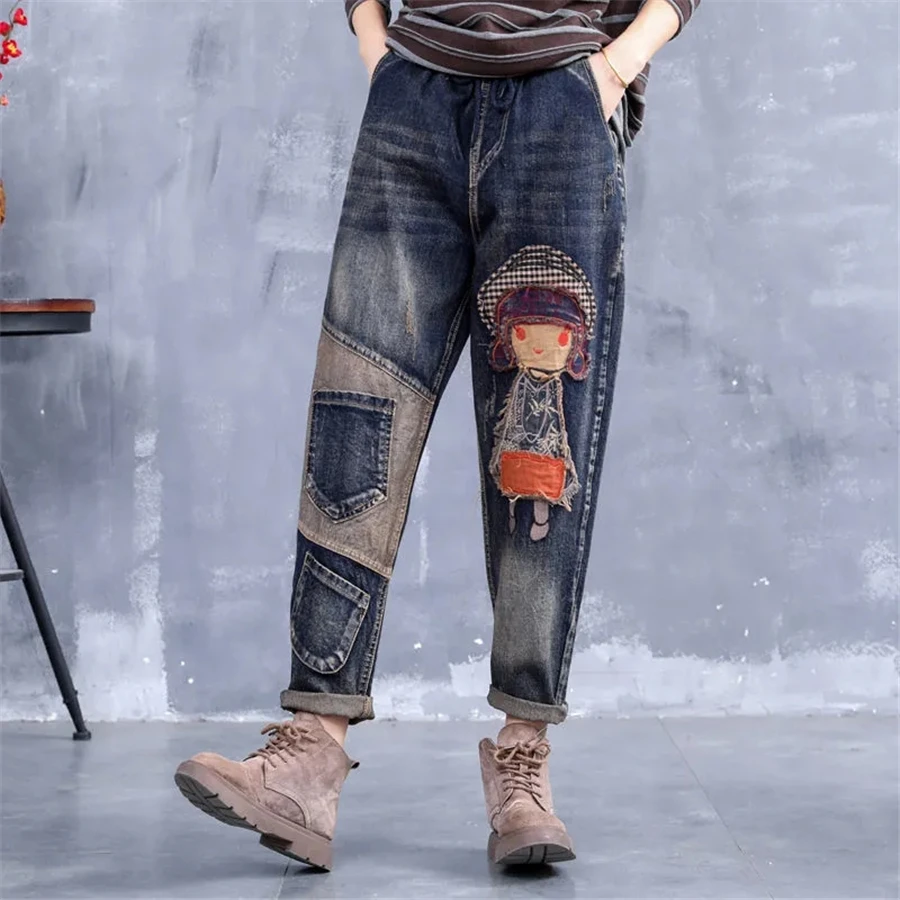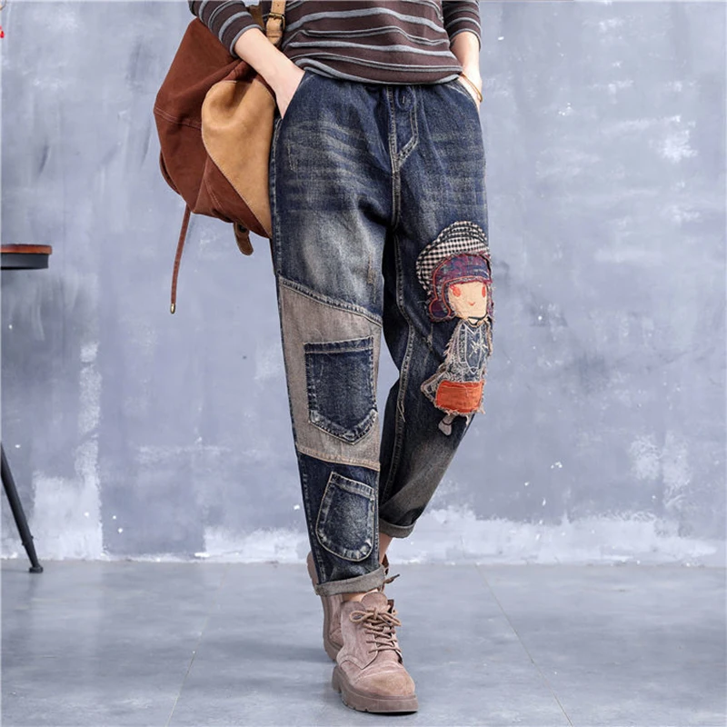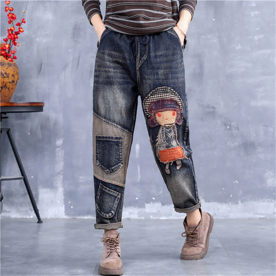 Vintage printing Embroidery Women Harem Jeans JKP5987