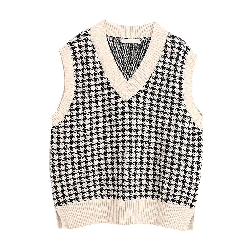 Vintage Sleeveless Plaid Knitted Sweater JKP4517