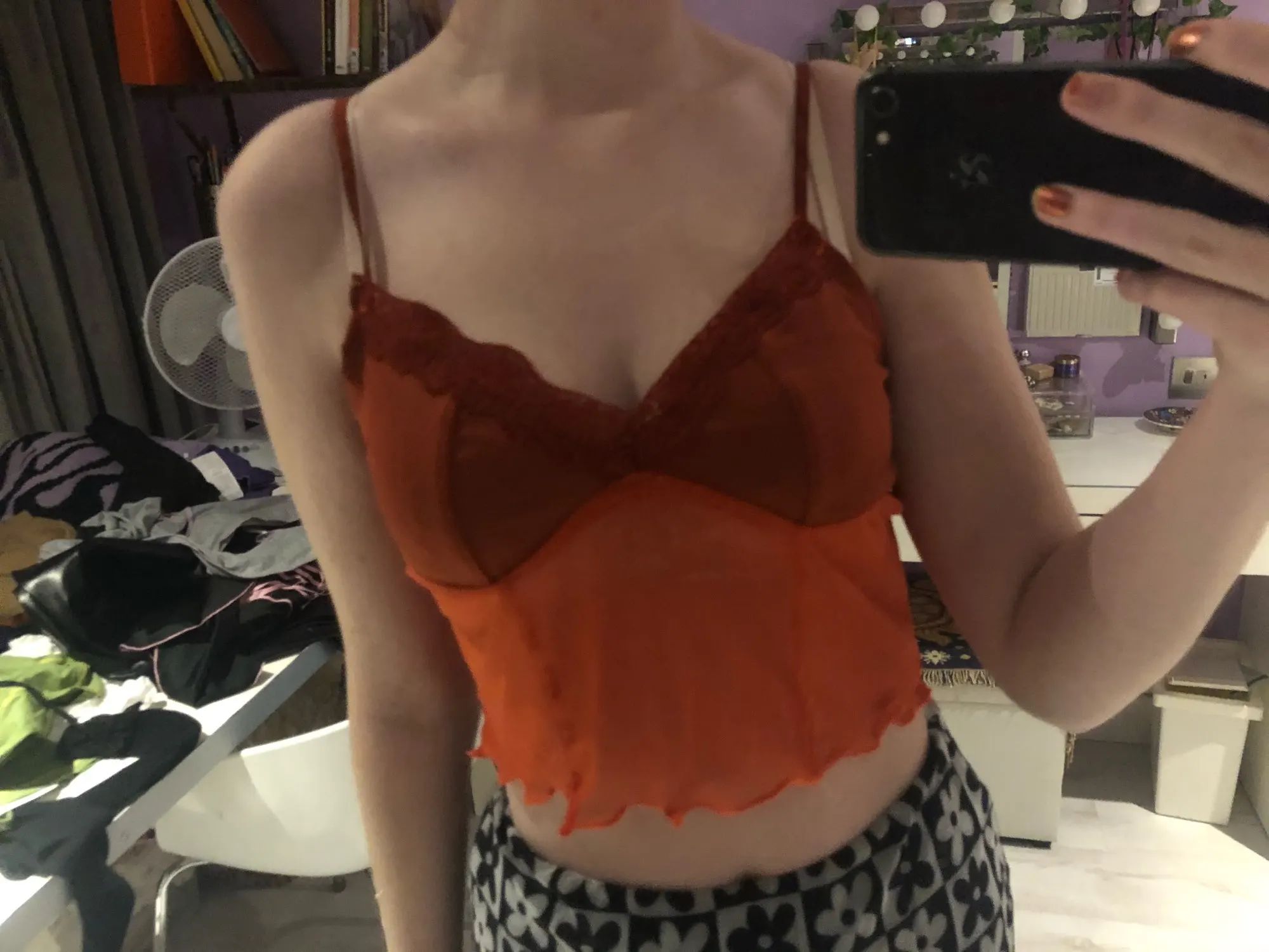 cute, I like how the cups aren’t see through but the rest is. size up if u have bigger boobs tho because the cups finish higher up than I’d like and the straps aren’t adjustable. I got a size medium