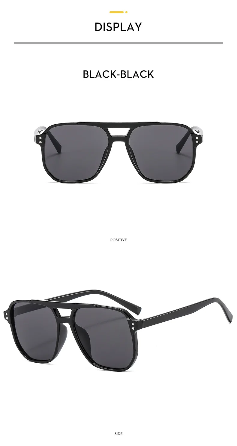 Vintage Square Thick Frame Double Bridge Polygon Shades Sunglasses JKP7364