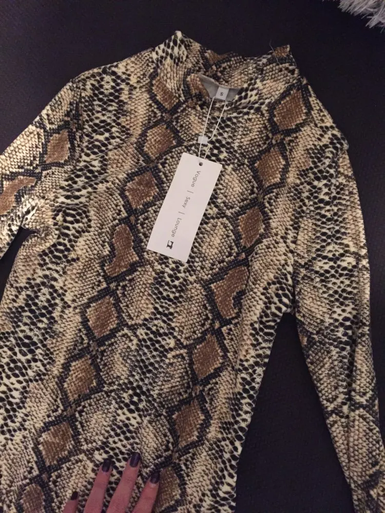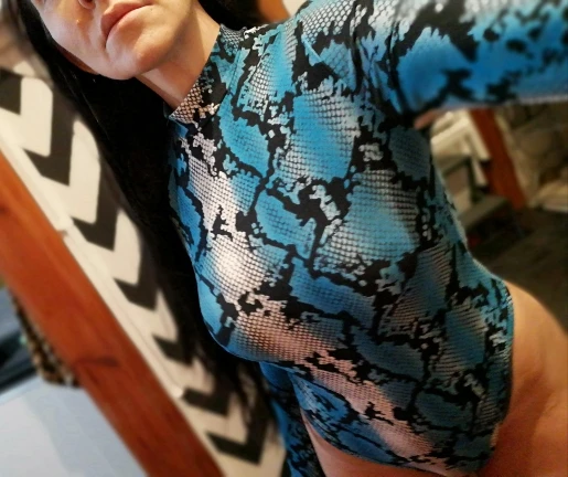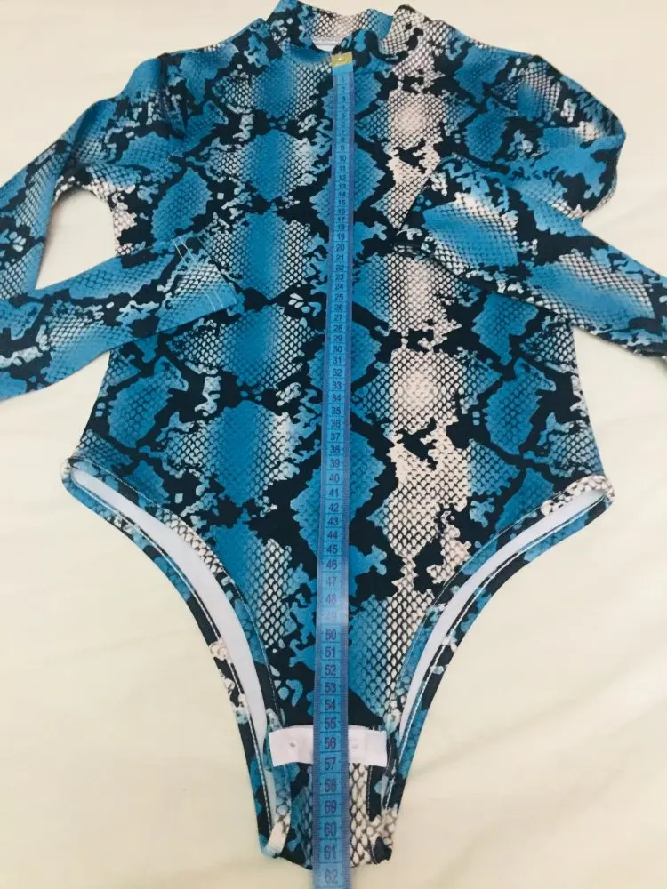 FREE SHIPPING Snake Skin Turtleneck One Piece Bodysuits JKP1453