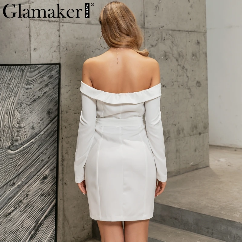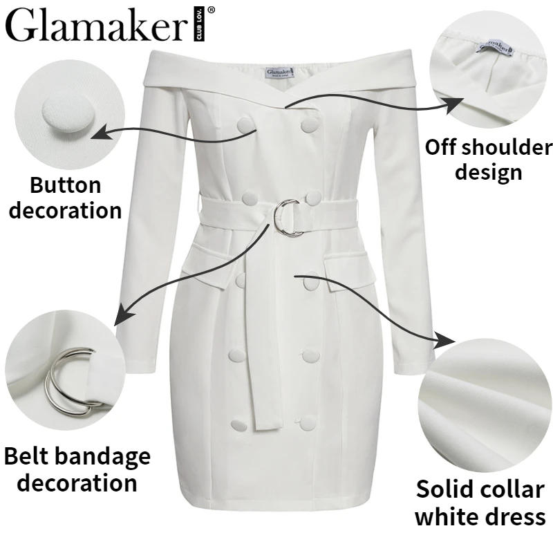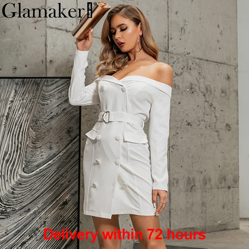 White Off Shoulder Blazer Dress With Belt Bodycon Elegant Short Dresses JKP3889
