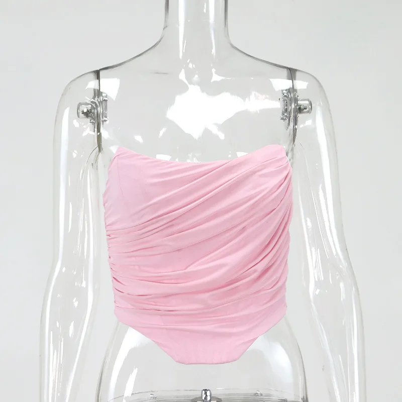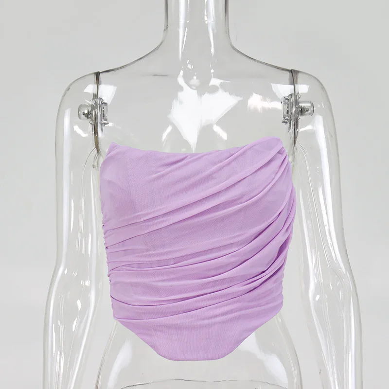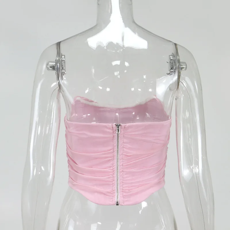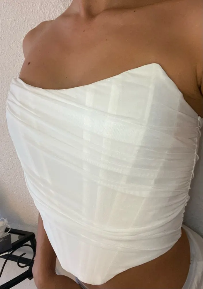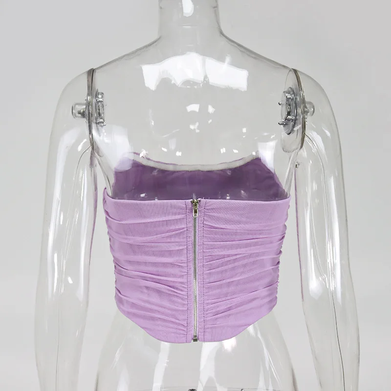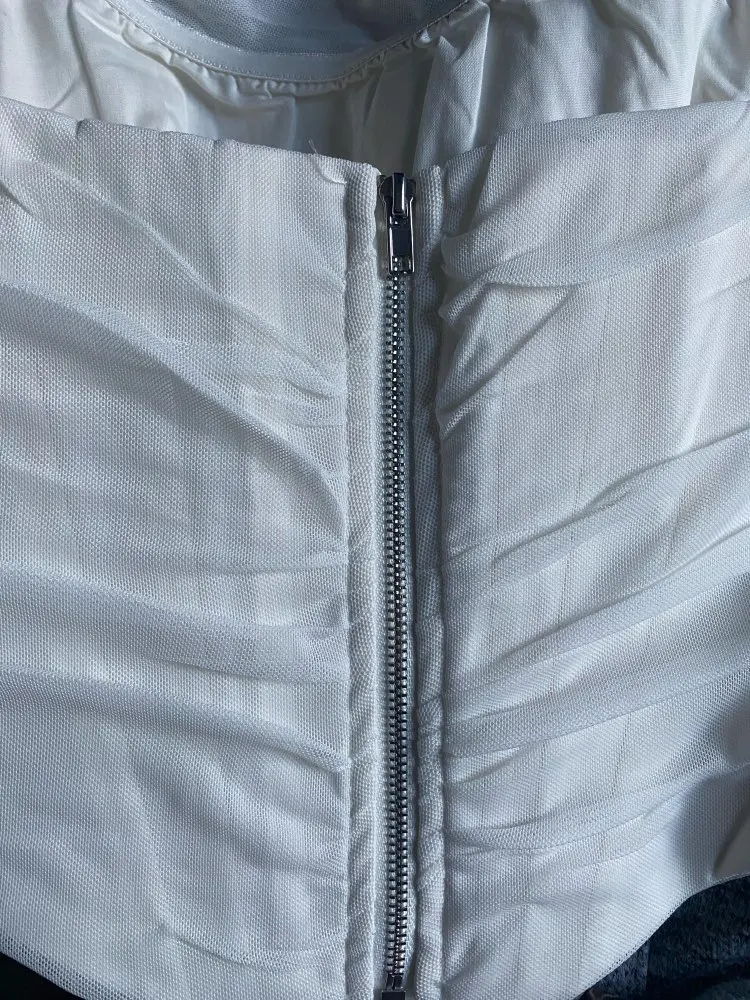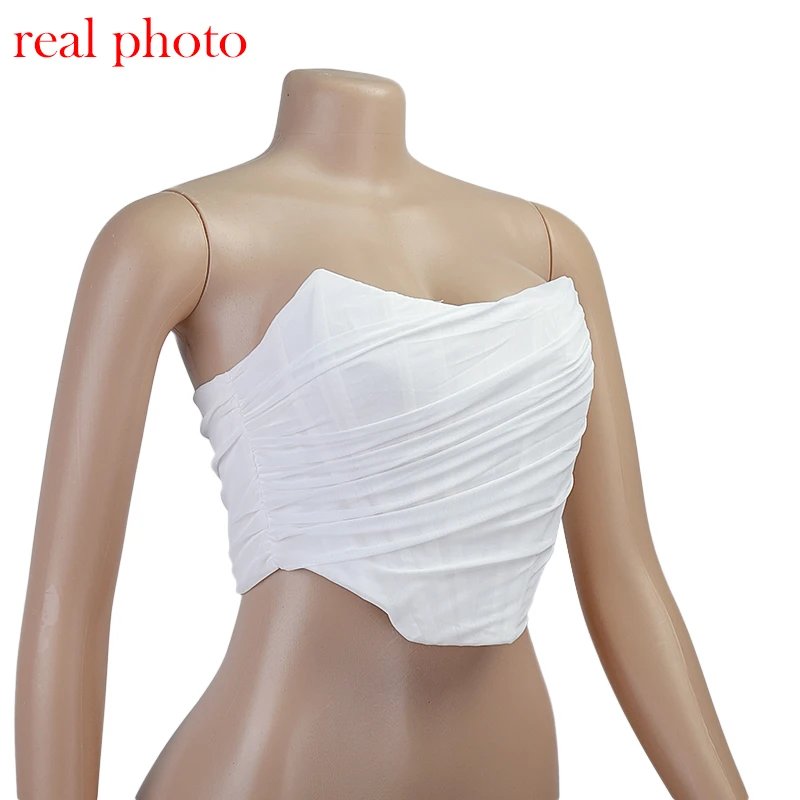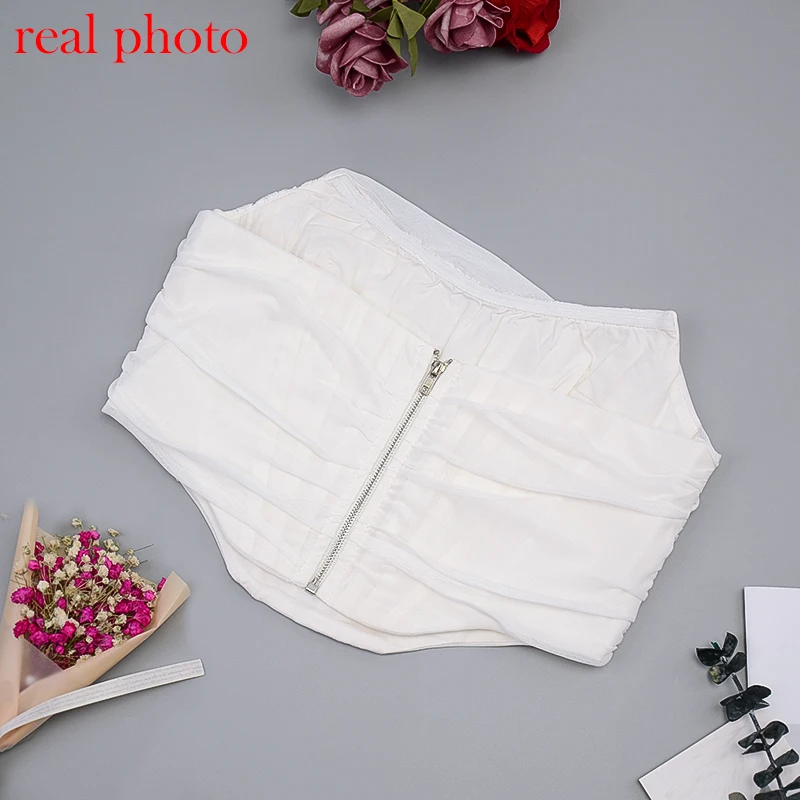 White Women Tops Bustier Corset Crop Tops Mesh Backless Zipper