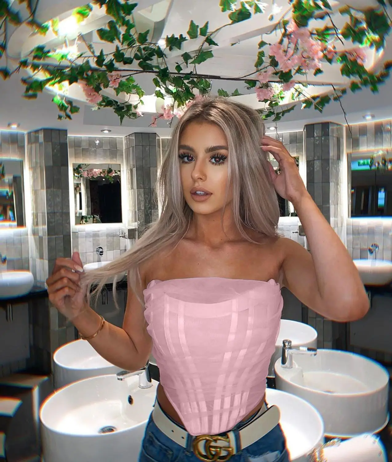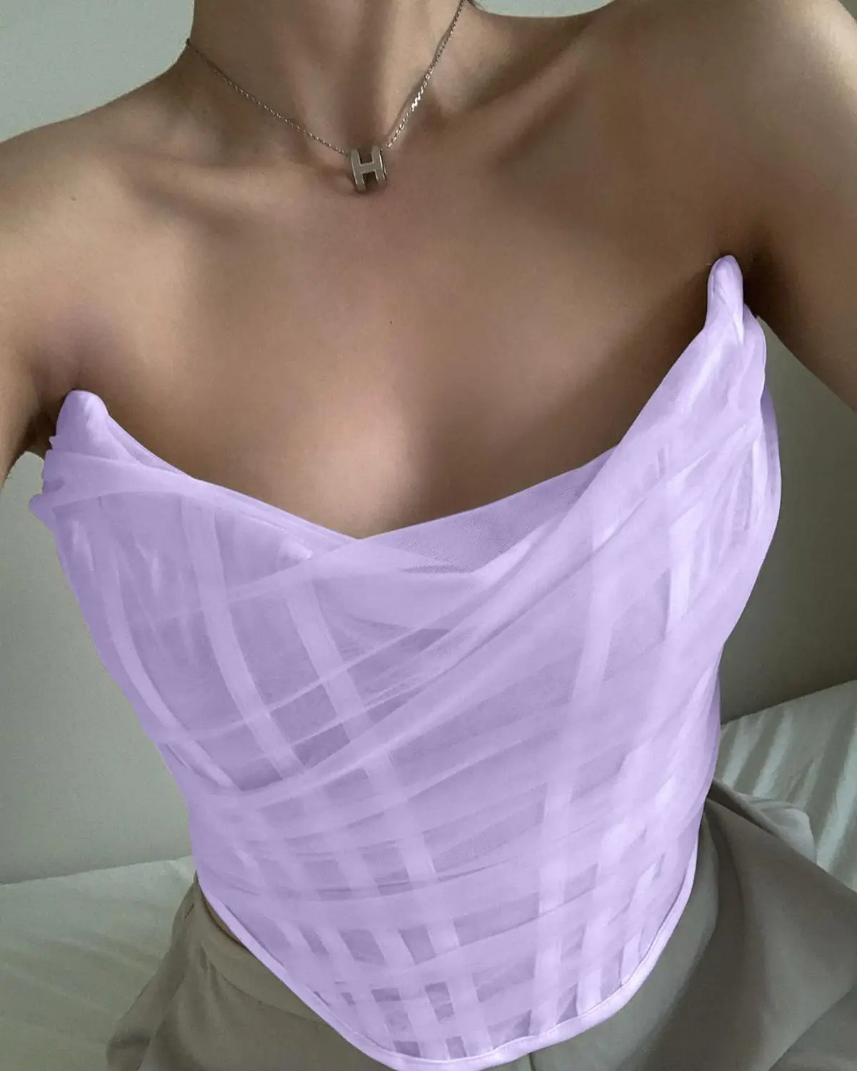 White Women Tops Bustier Corset Crop Tops Mesh Backless Zipper
