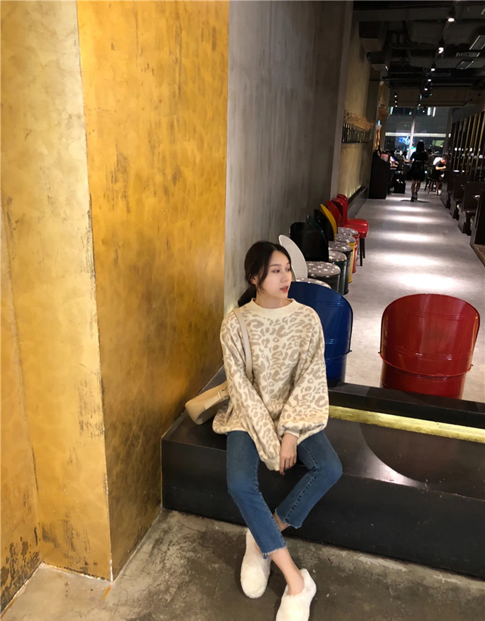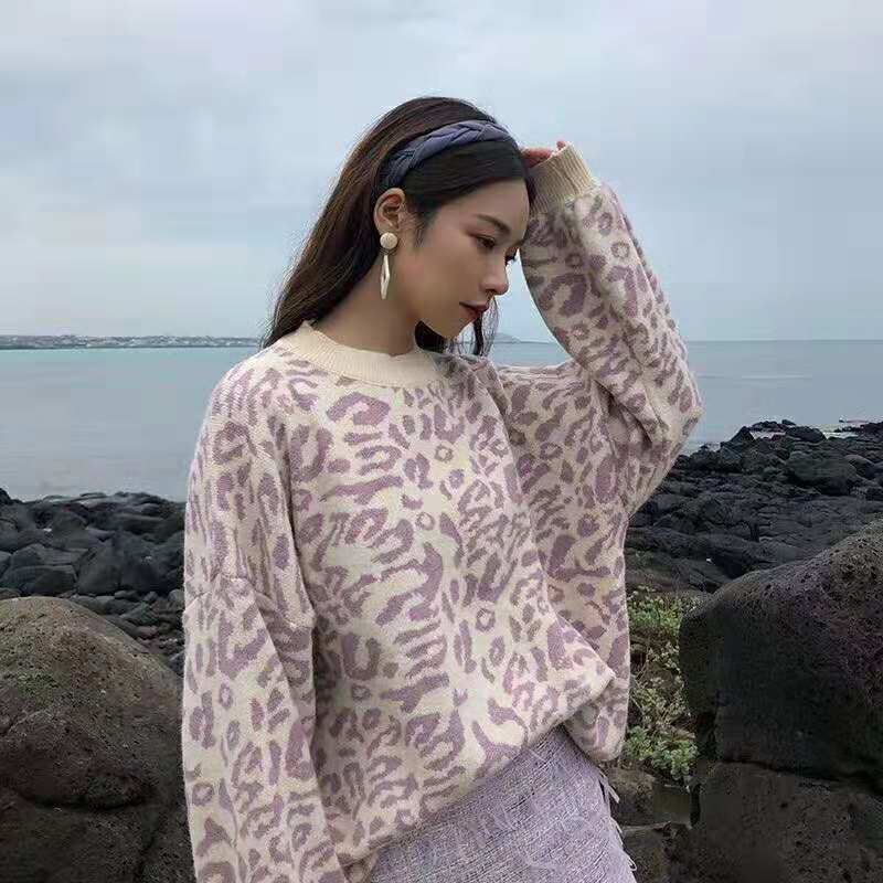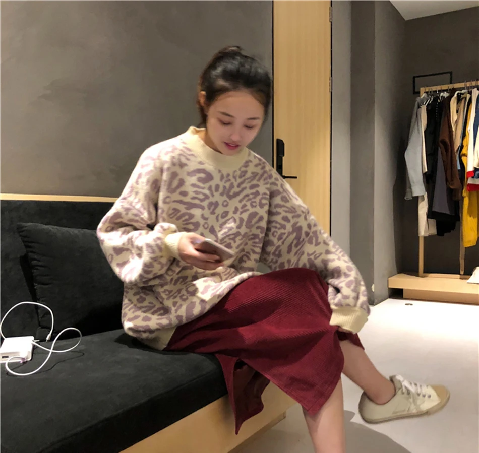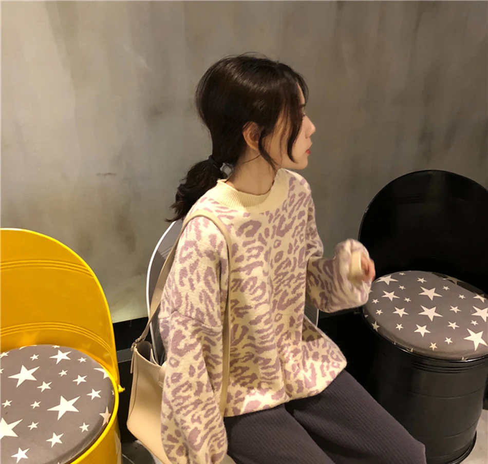 Winter Outfit Oversized Sweater Leopard Letter Print