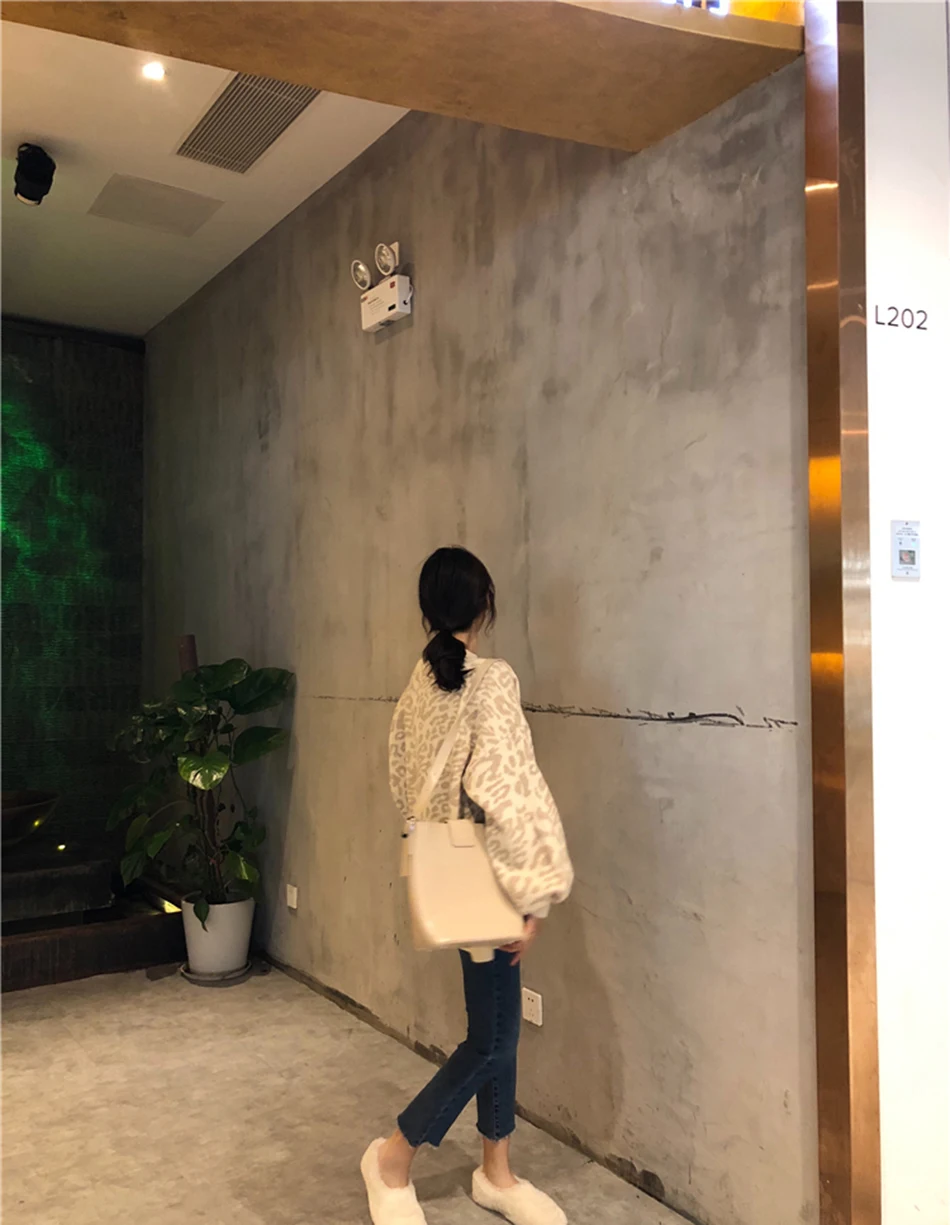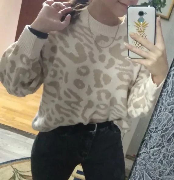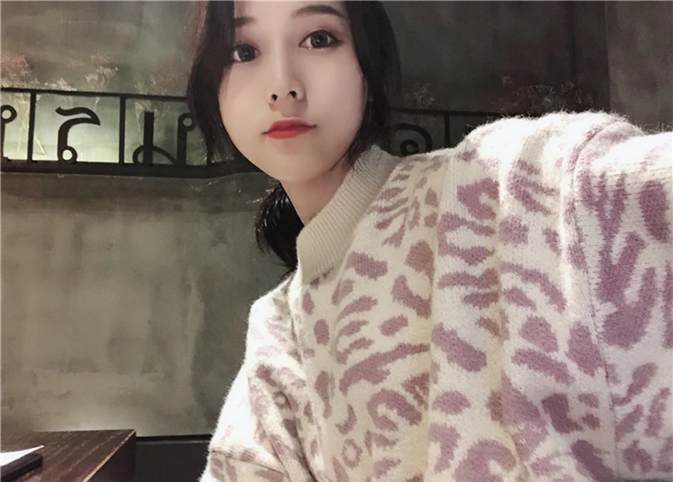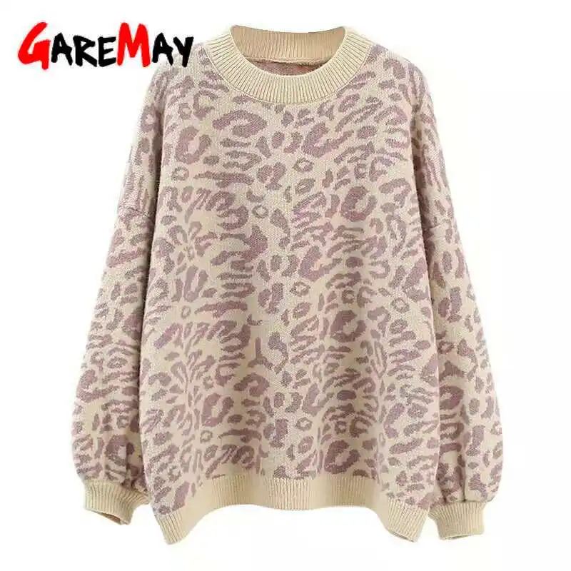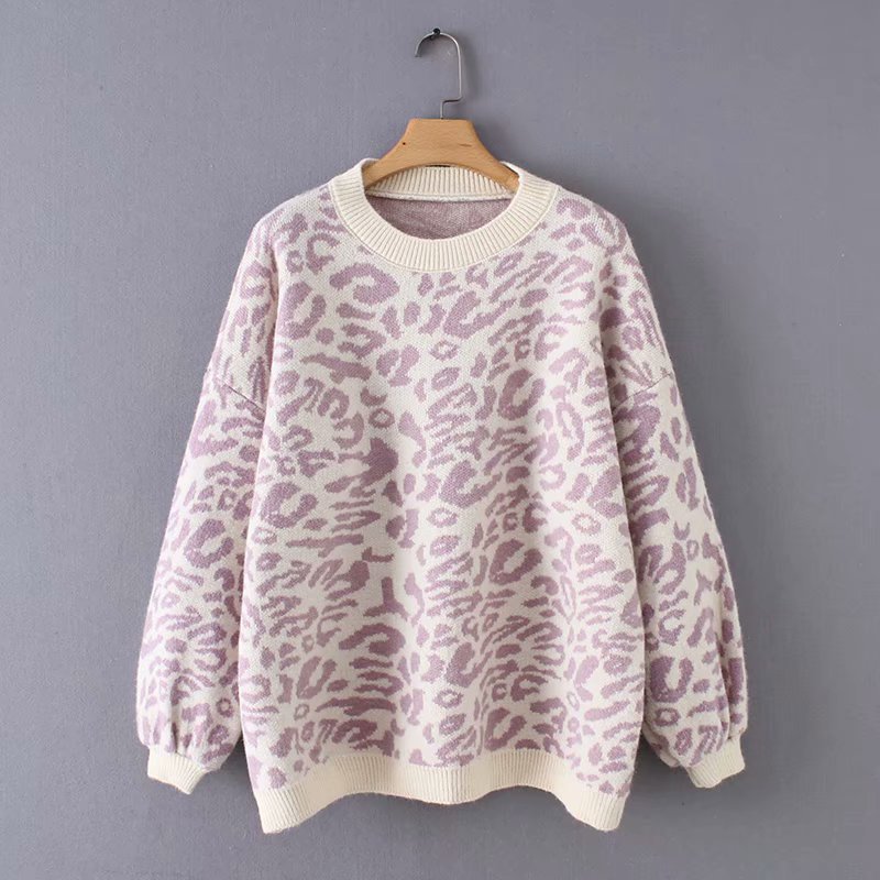Winter Outfit Oversized Sweater Leopard Letter Print