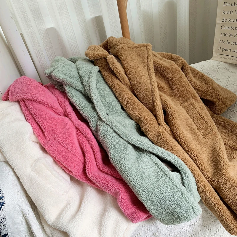 Winter Teddy Bear Oversized Long Coat Pink Faux Lambswool Fur Coats JKP5865