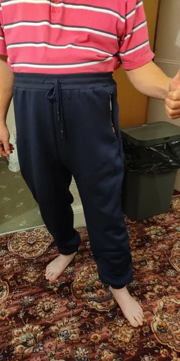 I ordered sports pants for my spouse. Warm, the fur is good, the fabric quality is good, the fabric is thick. Took 2XL, fit perfectly on his weight of 78 kg. Freely in the Belt and in the hips. Satisfied with the quality. The only negative package arrived in the country and there was no message that it was possible to receive the parcel. But we found her.