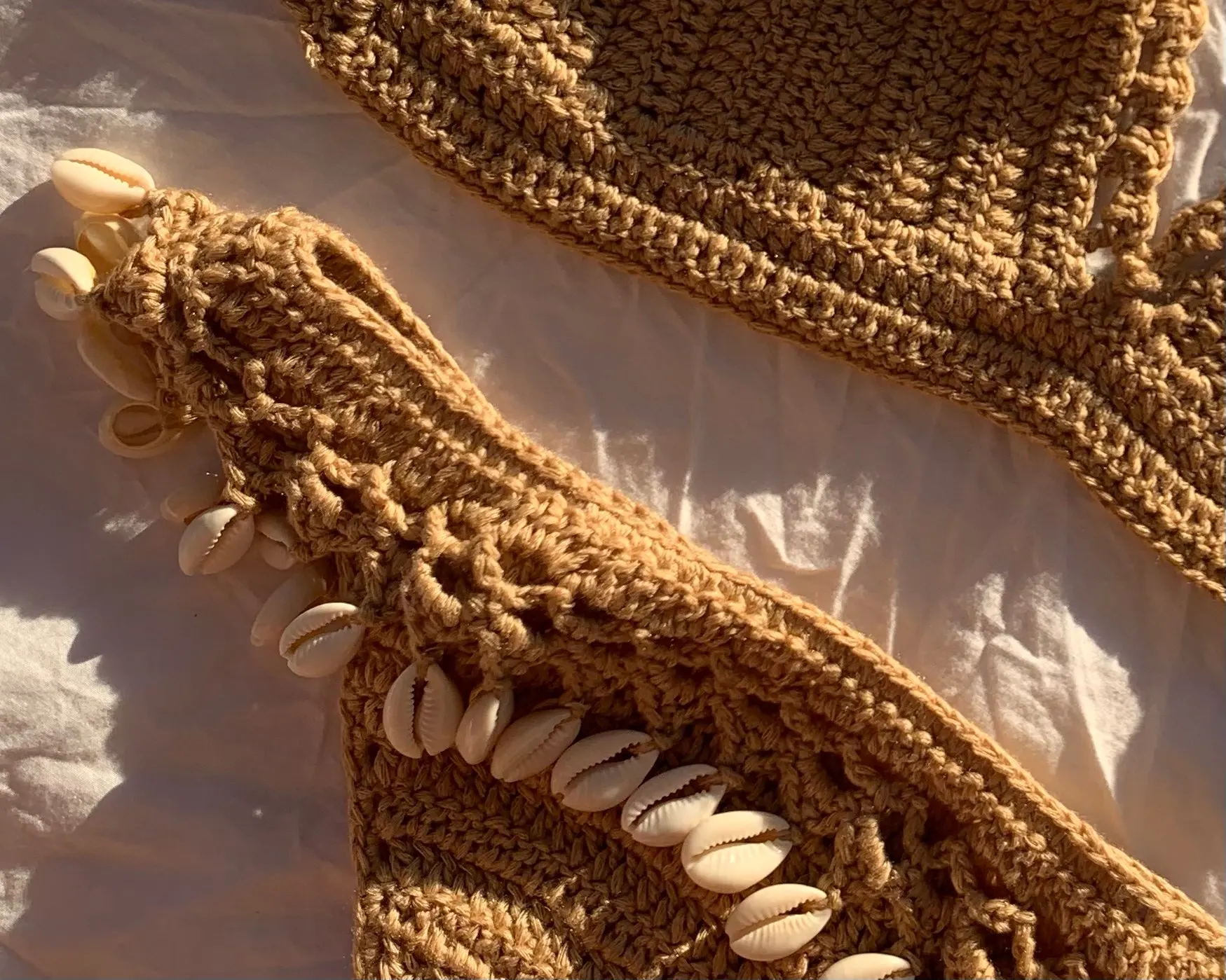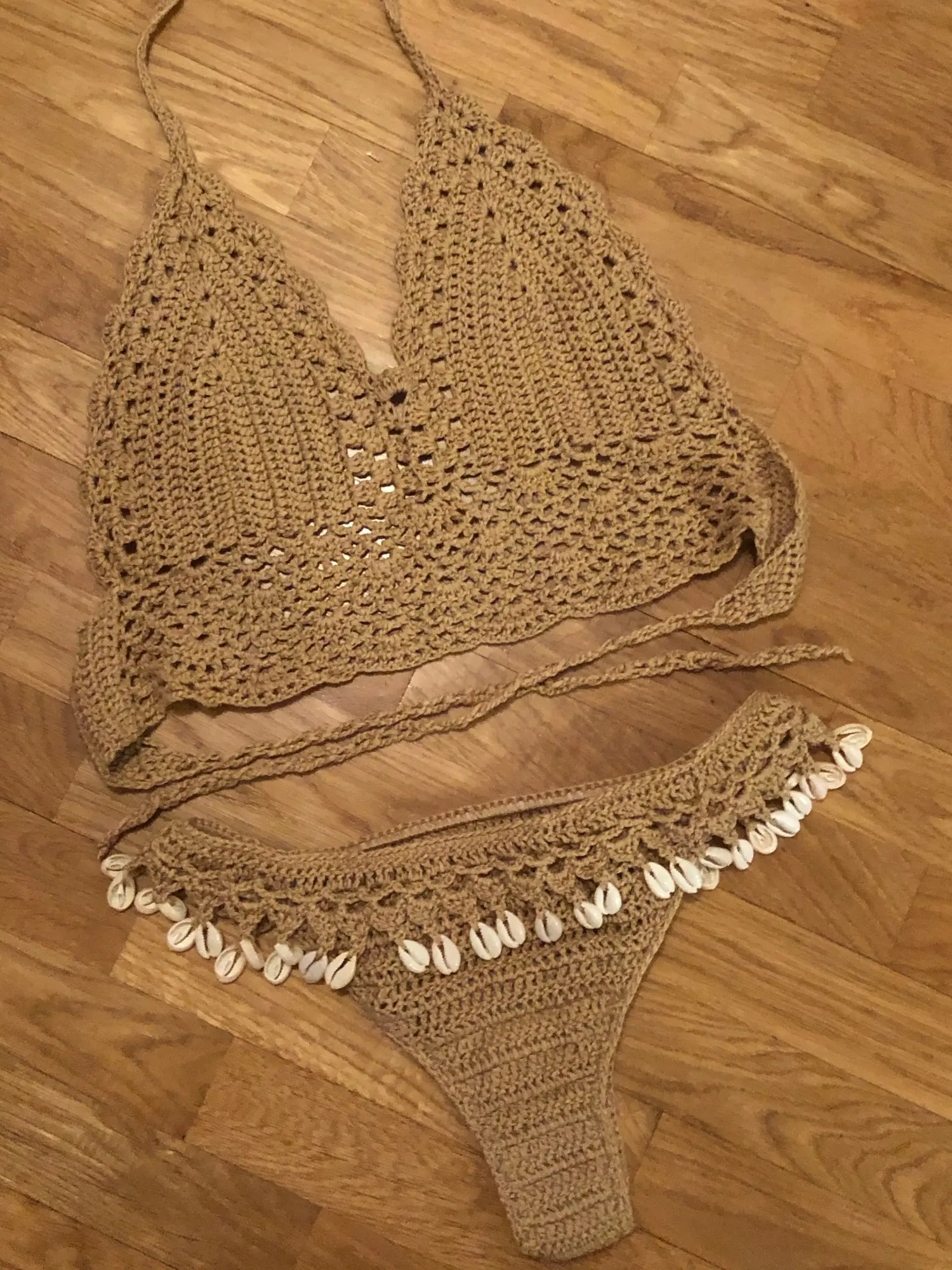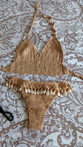 Woman Crochet Brazilian Swimsuit Shells Tassel Knitted Bikinis JKP4729