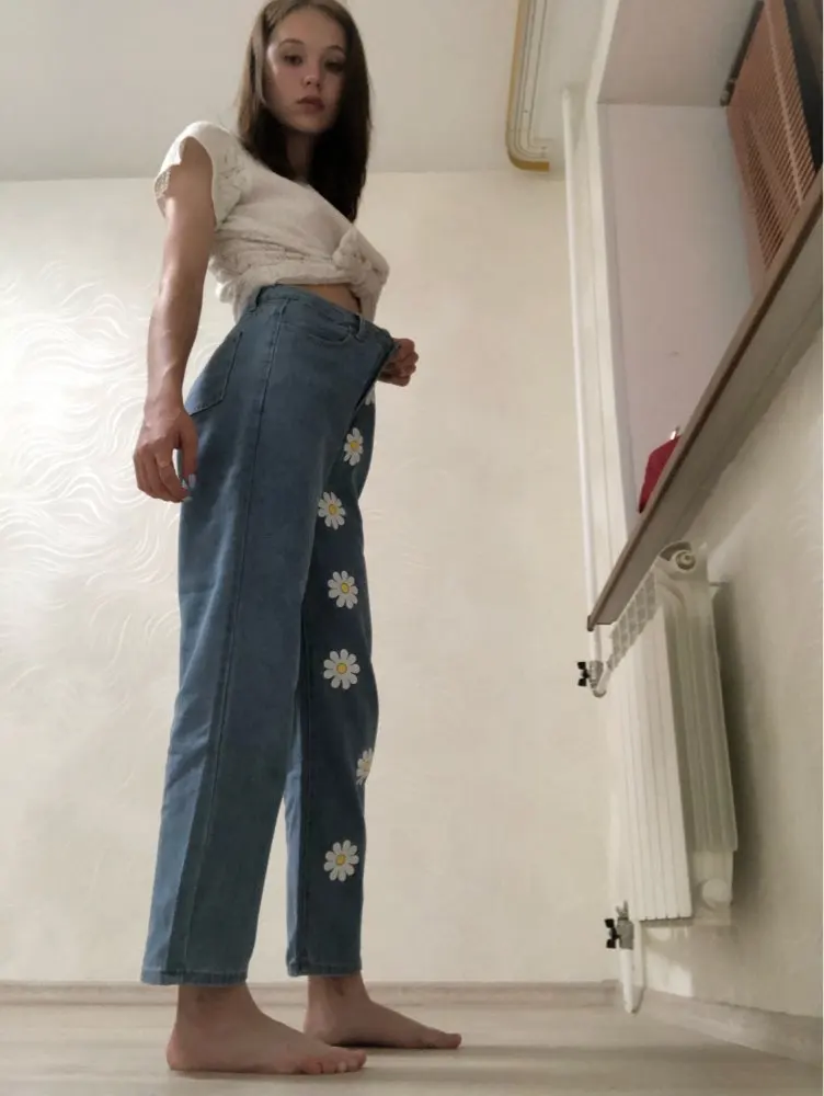 Very interesting model of mom jeans, looks original. Most my perfect jeans with AliExpress! My parameters 88/69/89, height 165, weight 50 kg, size I ordered M size, they are bigger to me, it was necessary to order s. Jeans are good, the fabric is soft. The quality is excellent, the jeans are dense, the shape perfectly holds There are no sticking threads. I recommend the store!