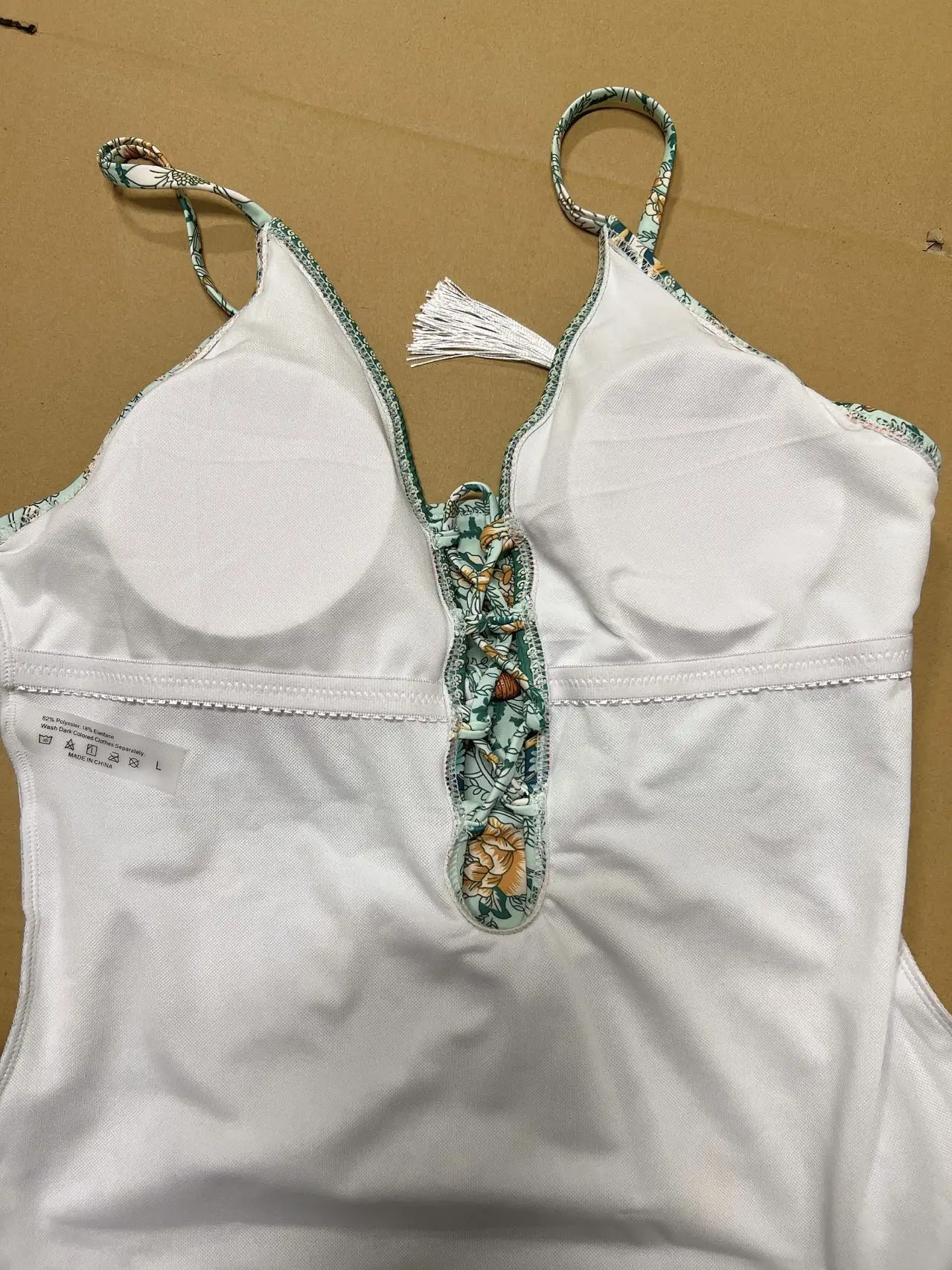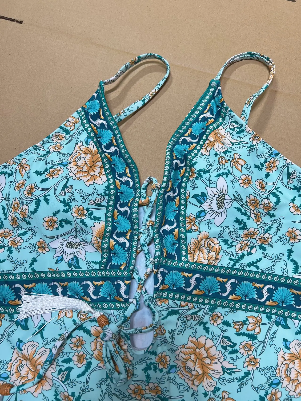 Women 2023 Hollow Out One Piece Bikini Vintage Print With Tassel Bandage Monokini JKP6020