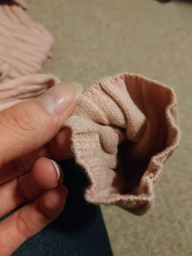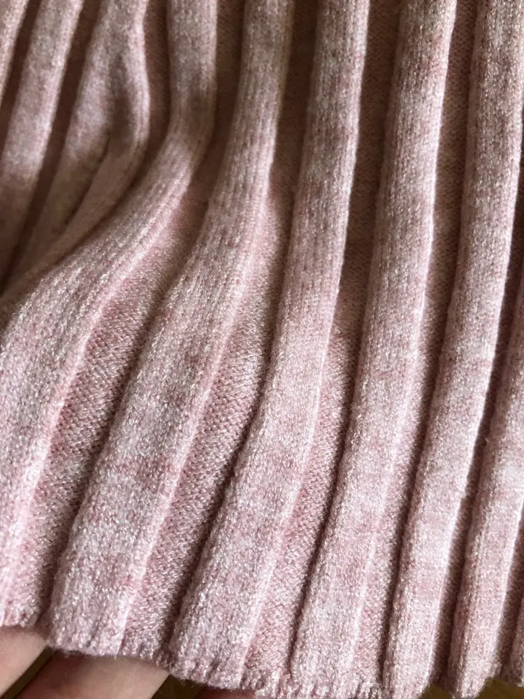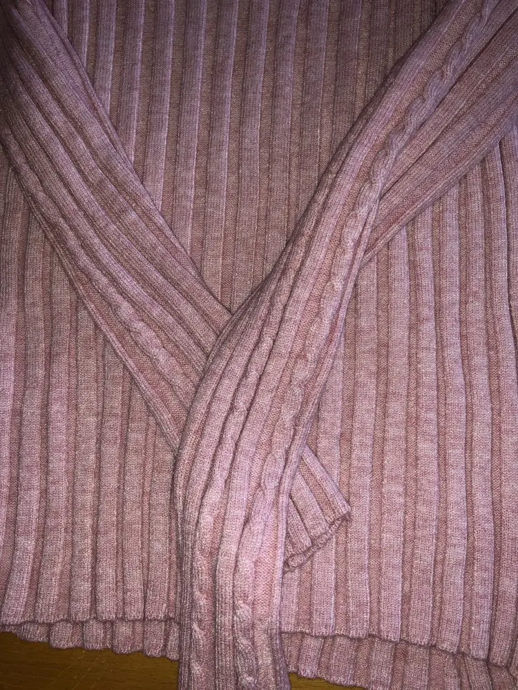 As described. Beautiful and soft. A bit stretching. Great quality, no threads sticking out, sewn very nicely, no smell. Color as described light pink. My parameters: height 168cm, weight 48kg, 76-62-90 this one size sweater fits perfectly even though I would like it be more free. It's not short, sleeves are good length too. It's very beautiful, recommend. Thank you store.