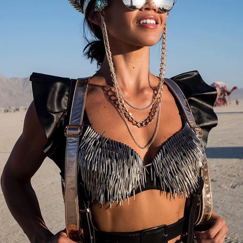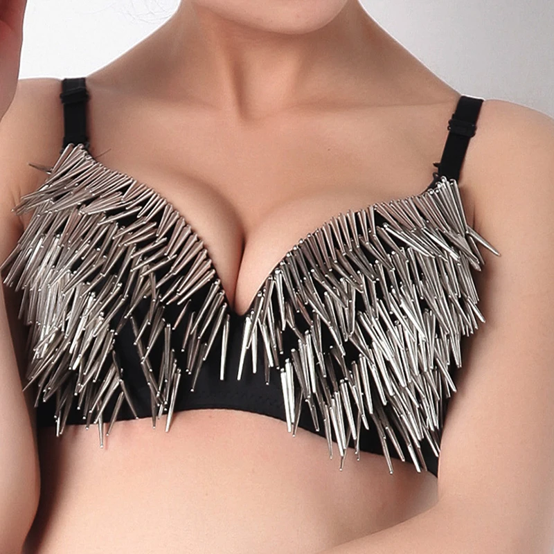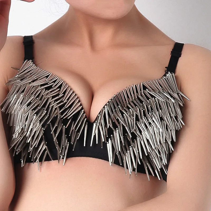 Women Backless Push Up Bra With Rivet Music Festival Clubwear Fashion Outfit JKP4731