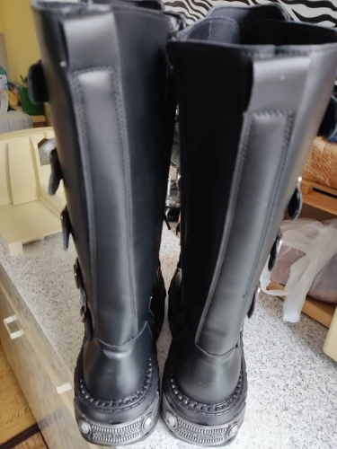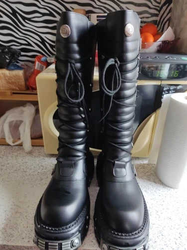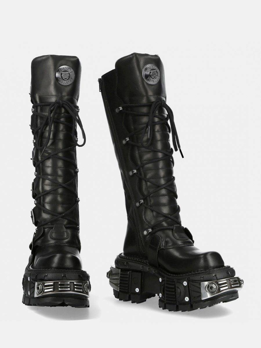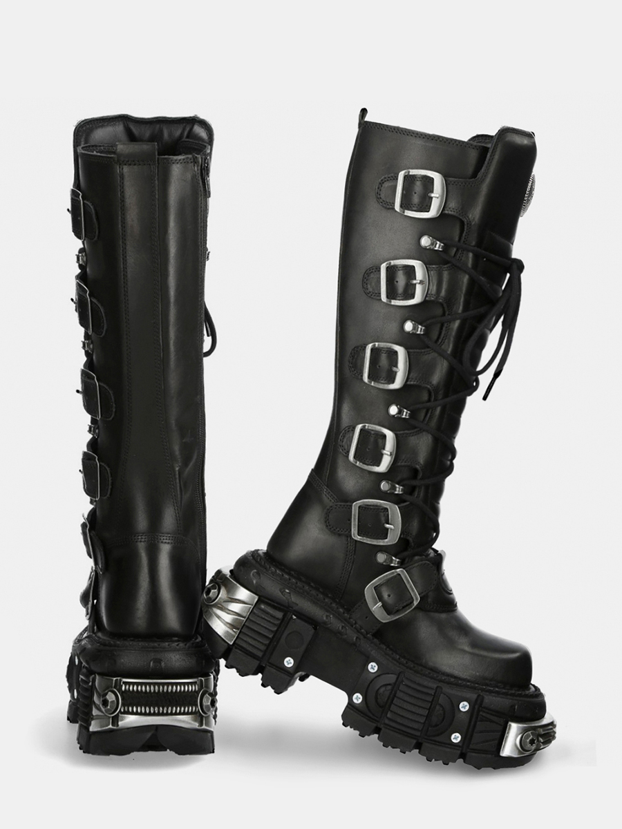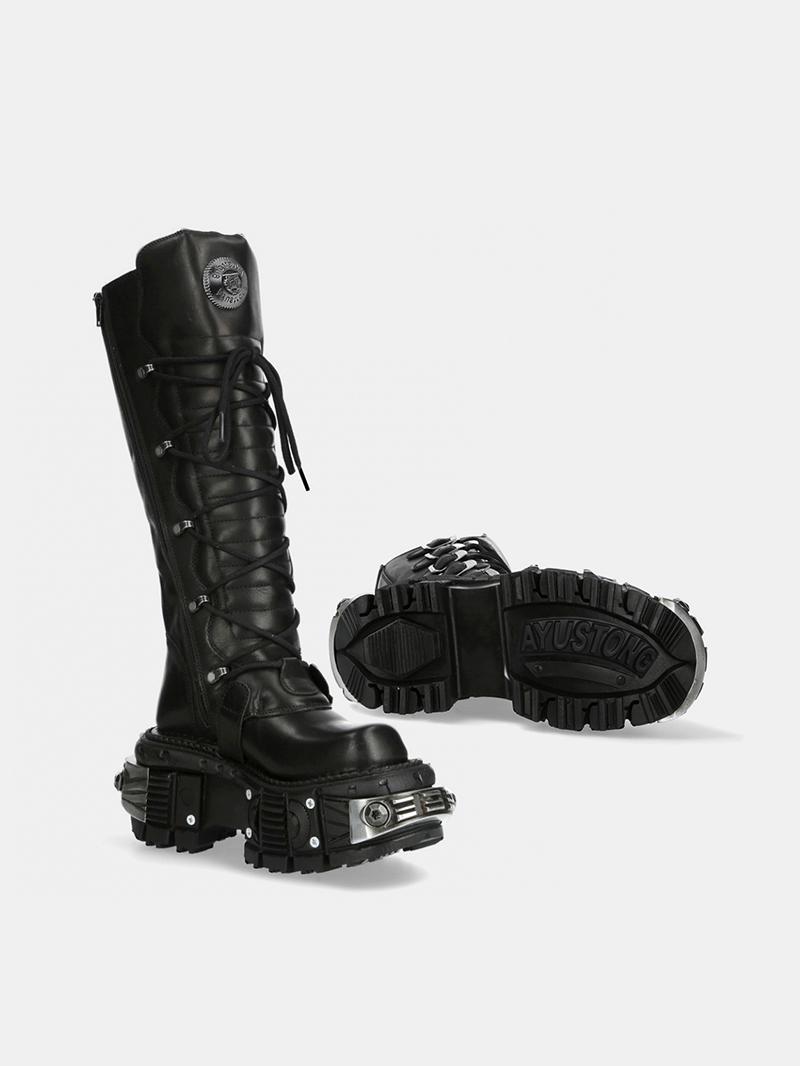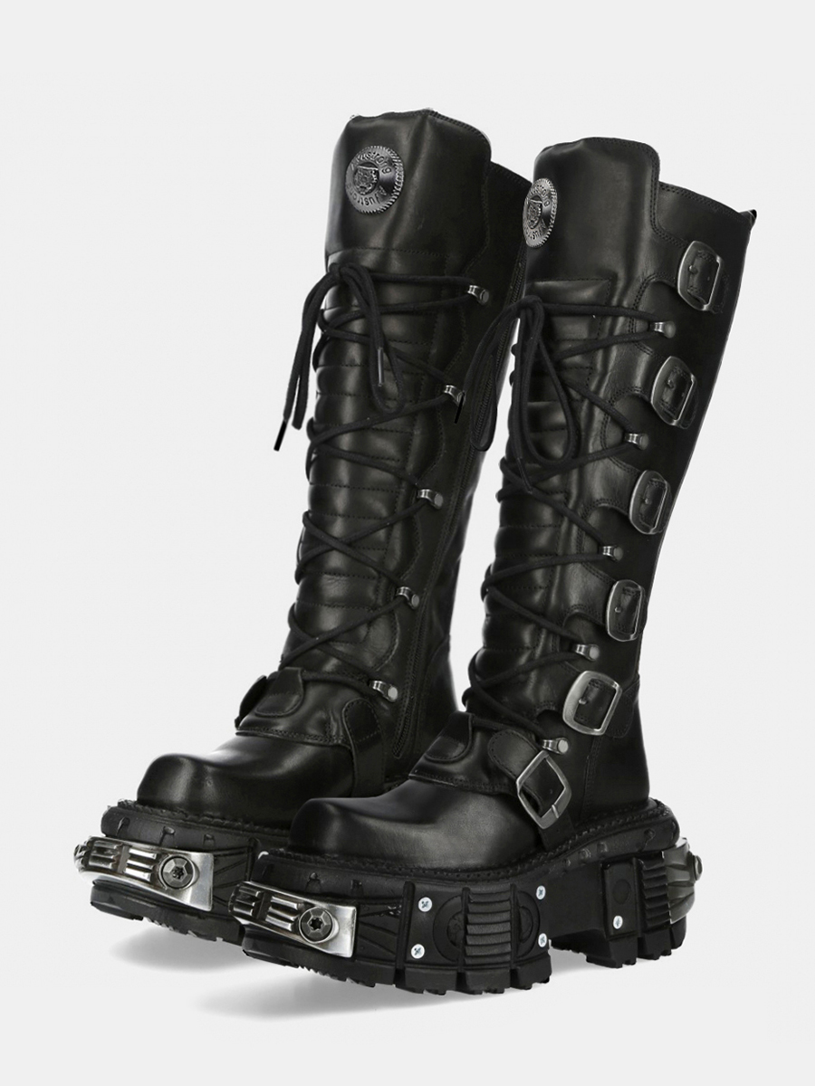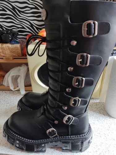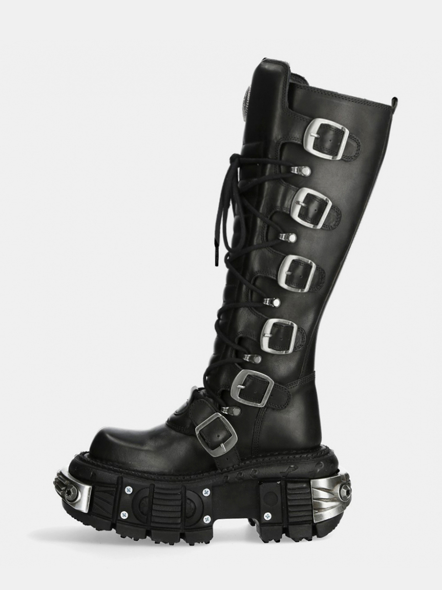 Women Black PU Leather Gothic Cyberpunk Platform Boots Black Punk Metal Buckel Combat Shoes JKP7314