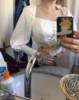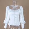 Women Blouse Shirt White Tunic Square Collar JKP4626