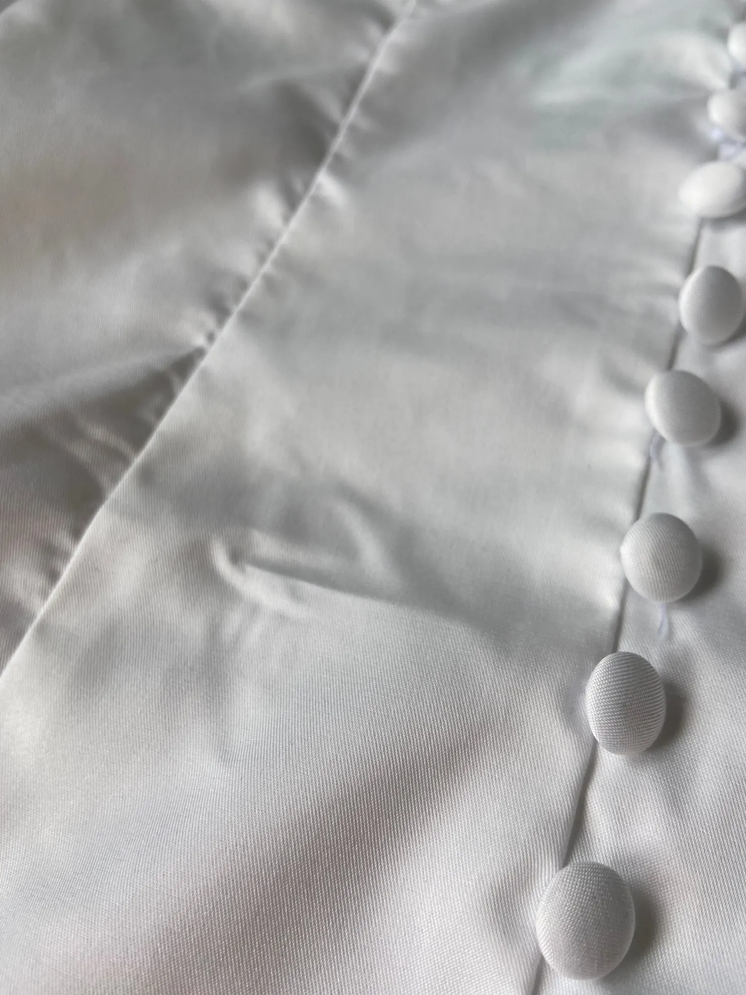 It's beautiful, I'm fast. I just have to say, it's a good buy, the fabric looks like satin type but it's not, it's less shiny and harder and it's beautiful on