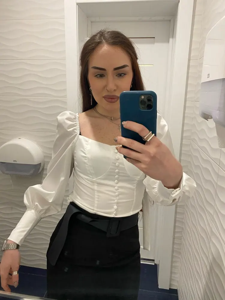 The blouse looks very worthy. My 80 × 60 × 90 took the size of S, went perfectly. Slightly confused the sleeves in the cuff area, when you button all the buttons very fearing movement. This is the only minus.